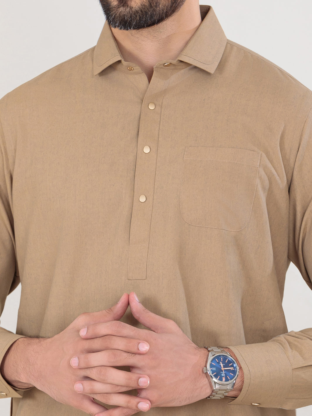 Beige Blended Kameez Shalwar - ALWA-KS-317
