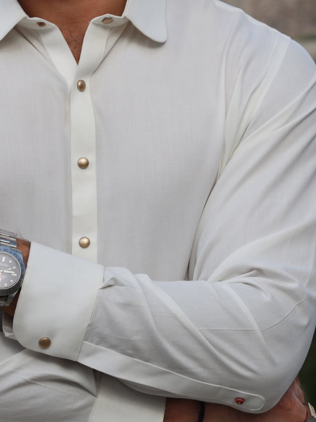 Rounded Collar With Snap Golden Buttons