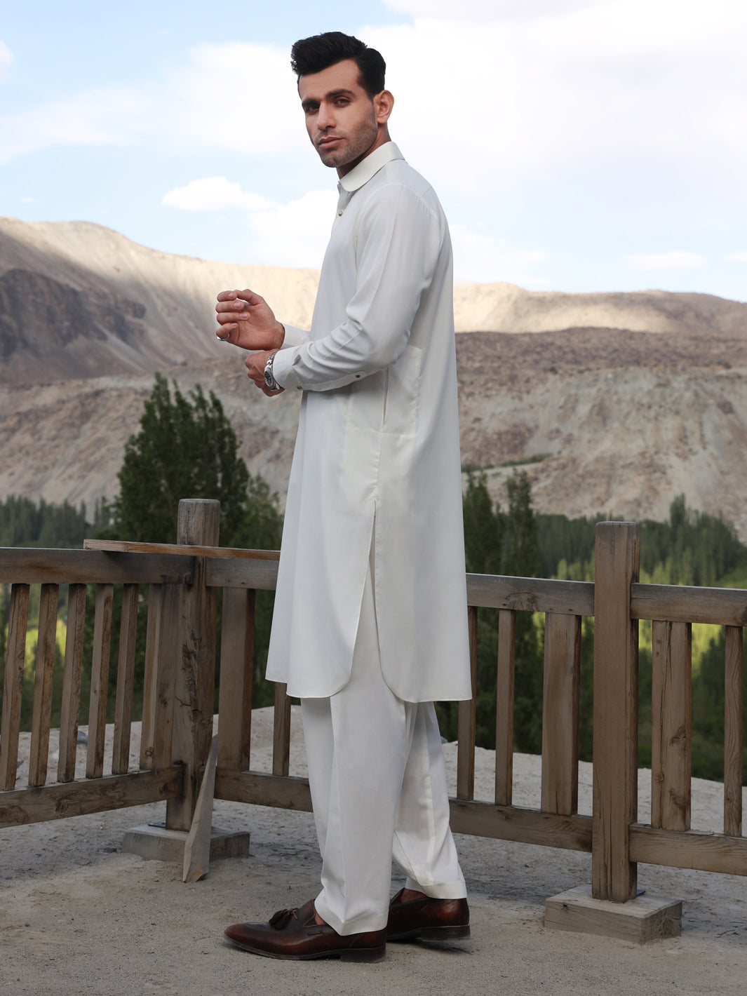 Off White Blended Kameez Shalwar - ALWA-KS-330