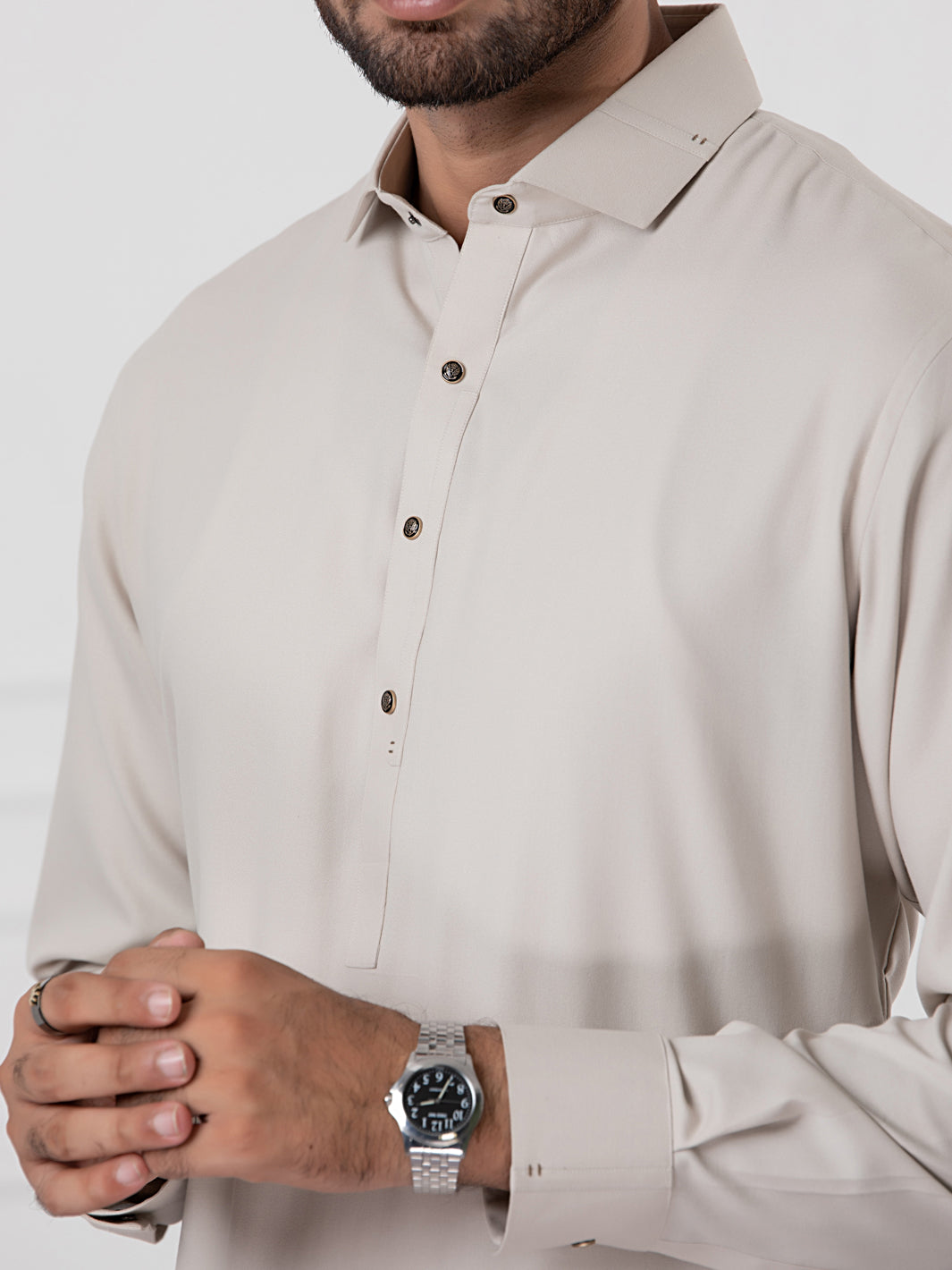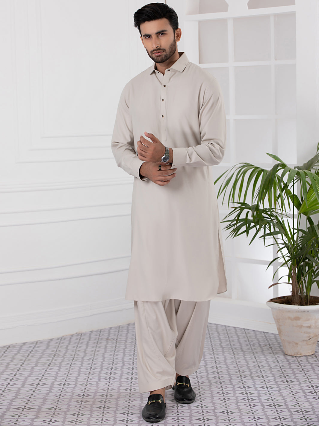 Beige Blended Kameez Shalwar - ALWA-KS-338