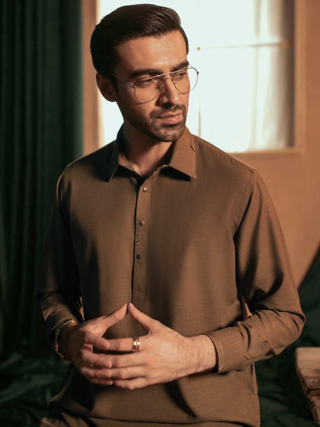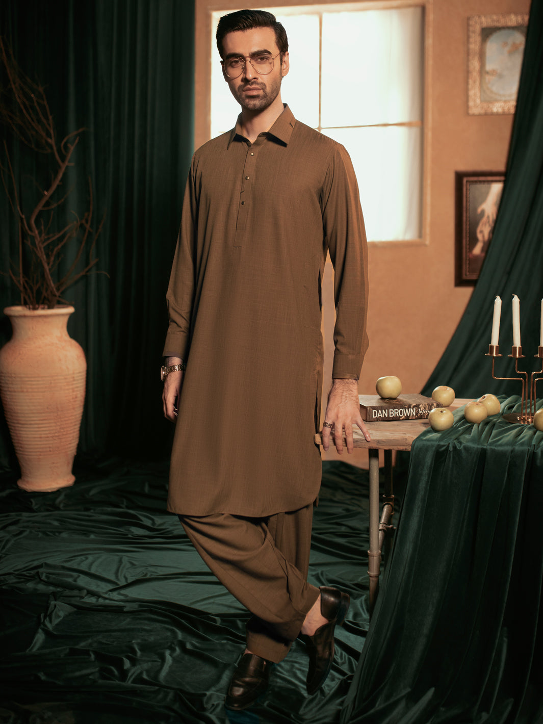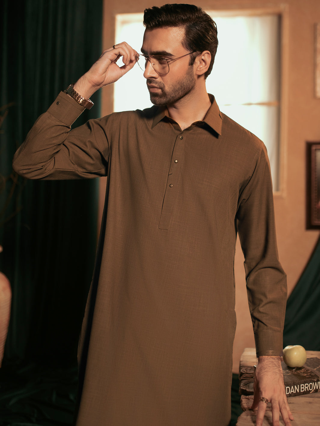Brown Plain Kameez Shalwar With Snap Button