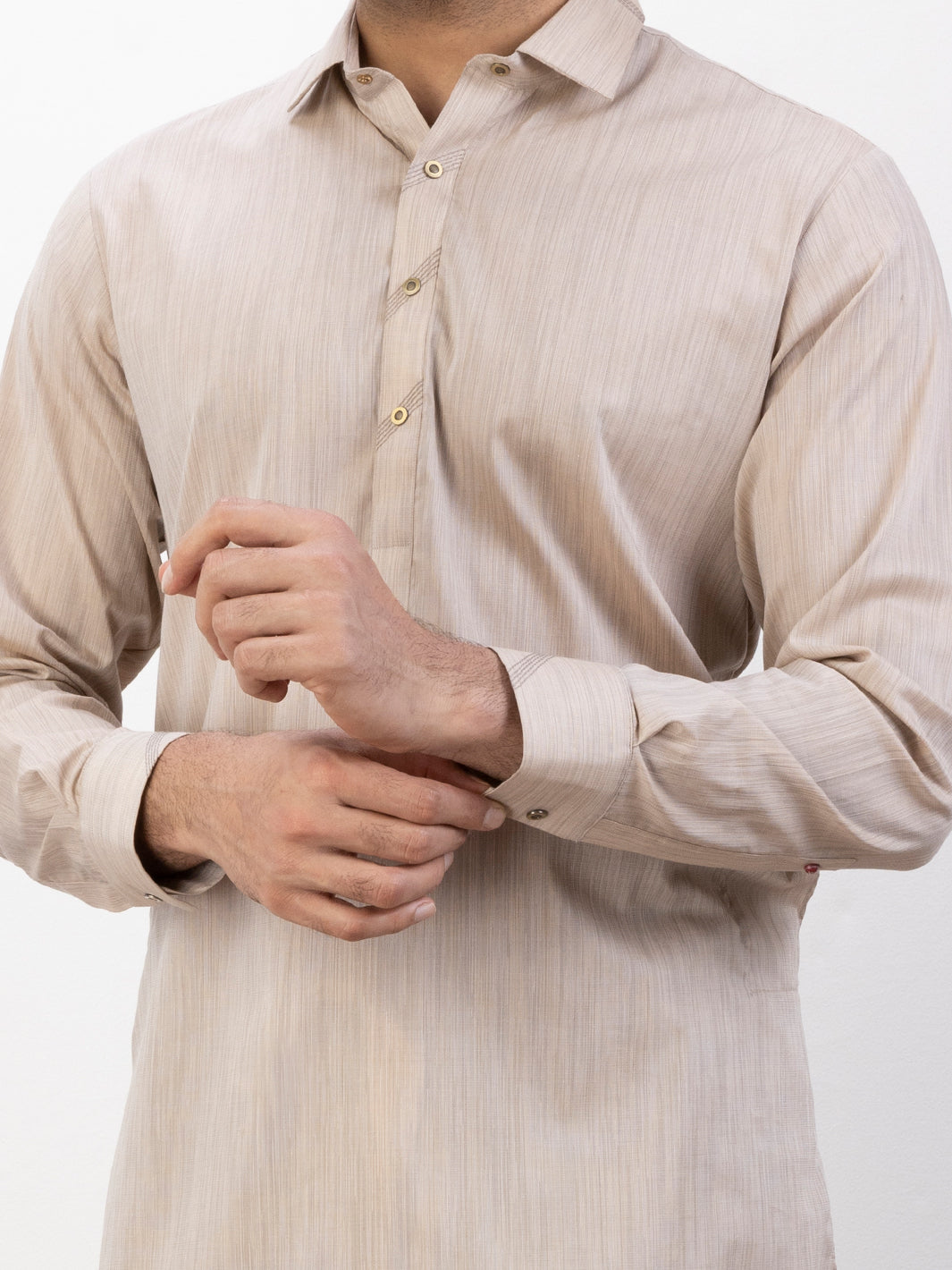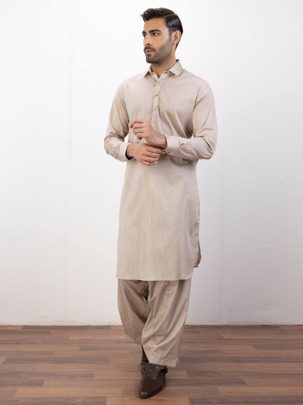 Beige Cotton Kameez Shalwar - ALWA-KS-386