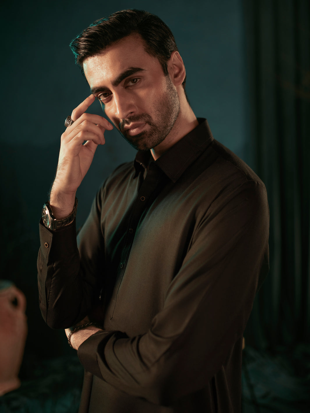 Black Blended Kameez Shalwar - ALWA-KS-389