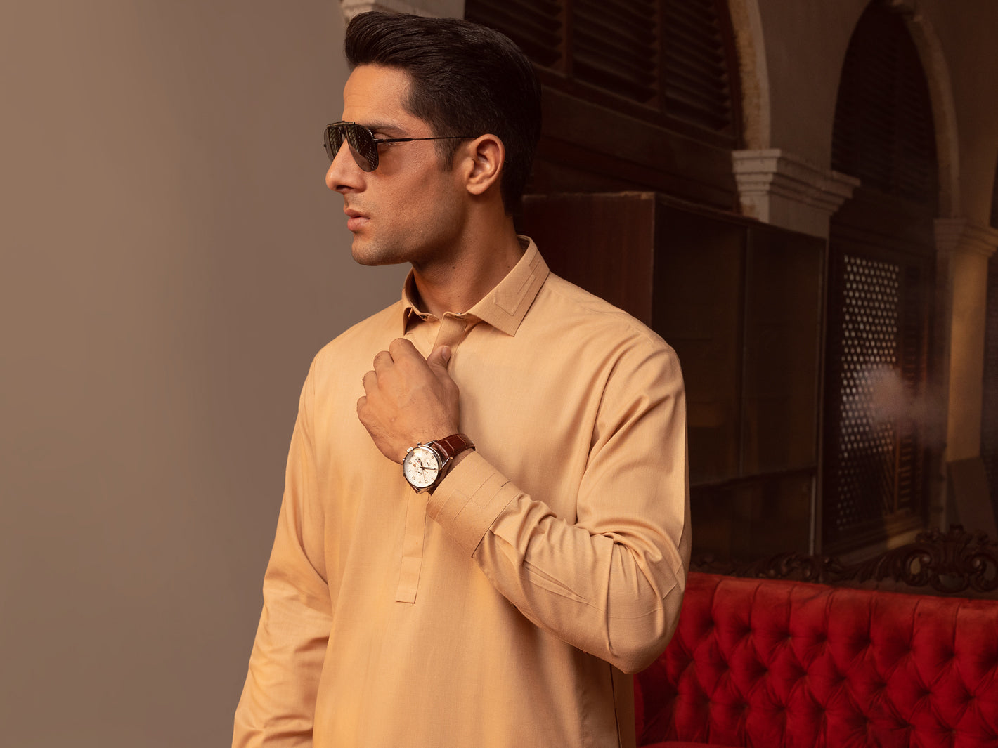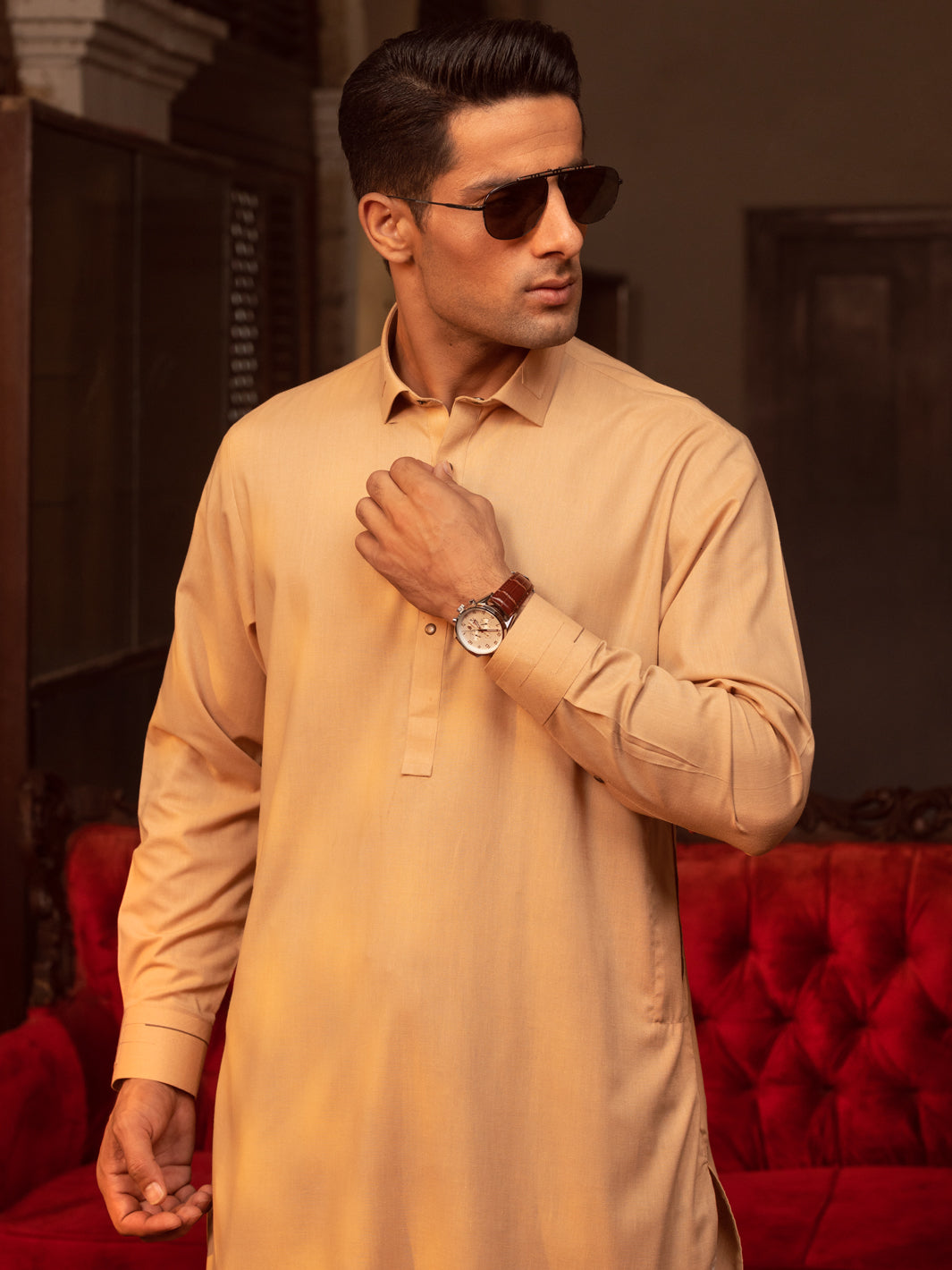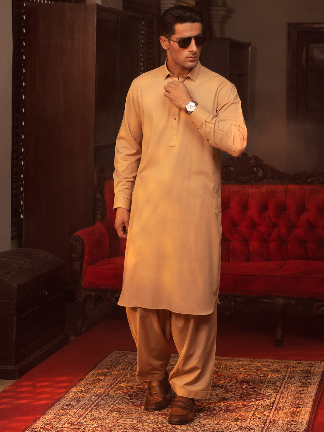 Beige Blended Kameez Shalwar - ALWA-KS-401