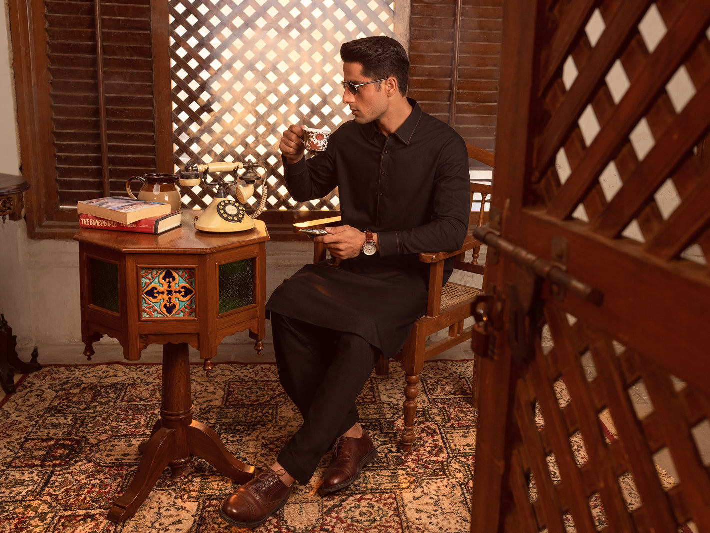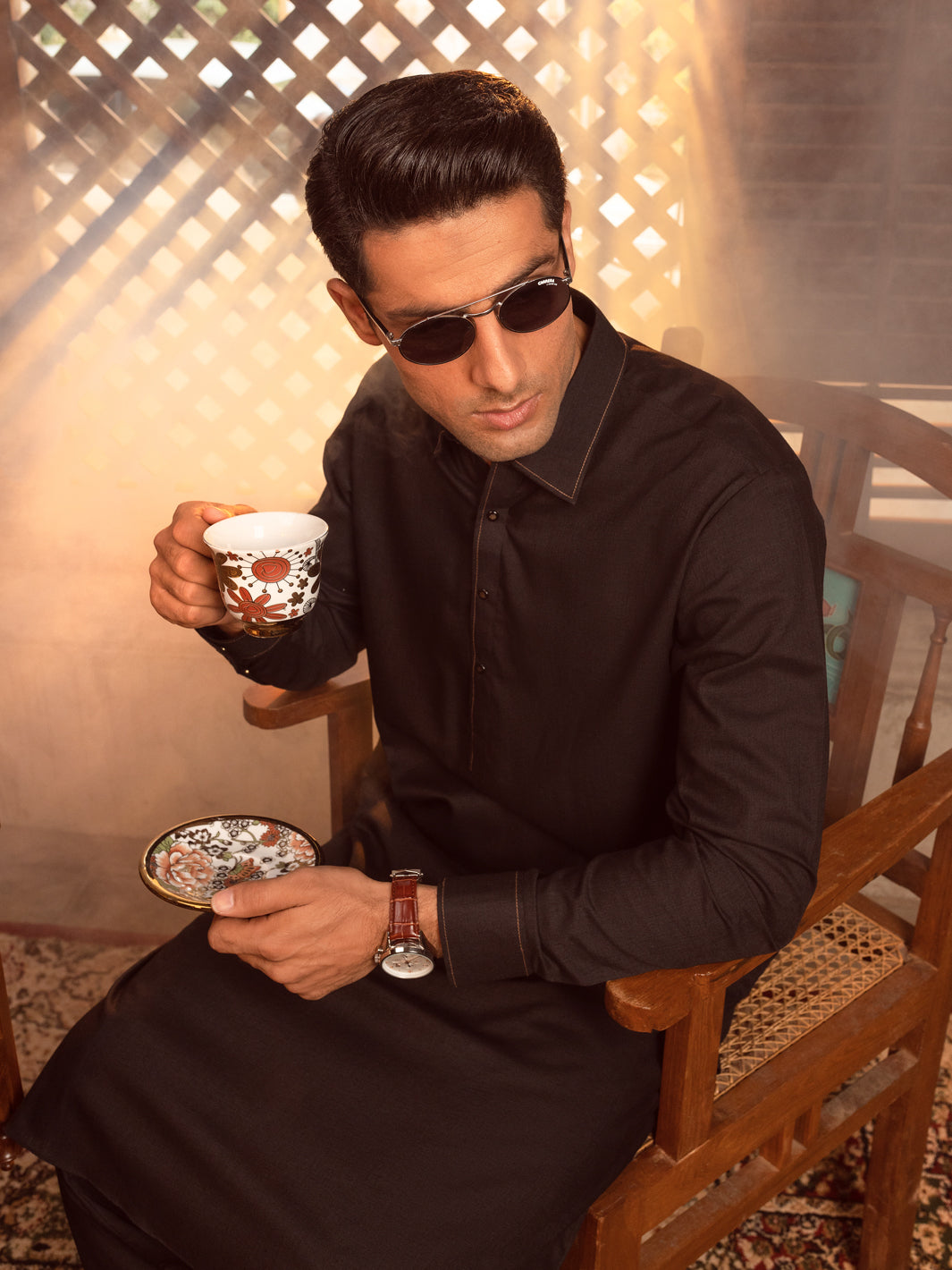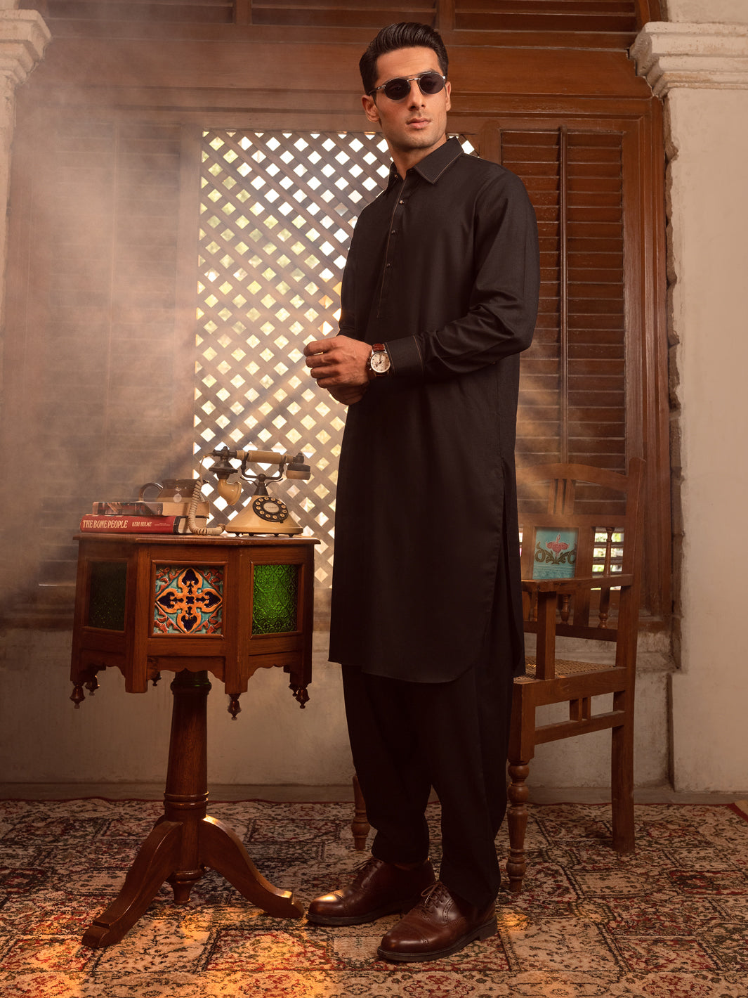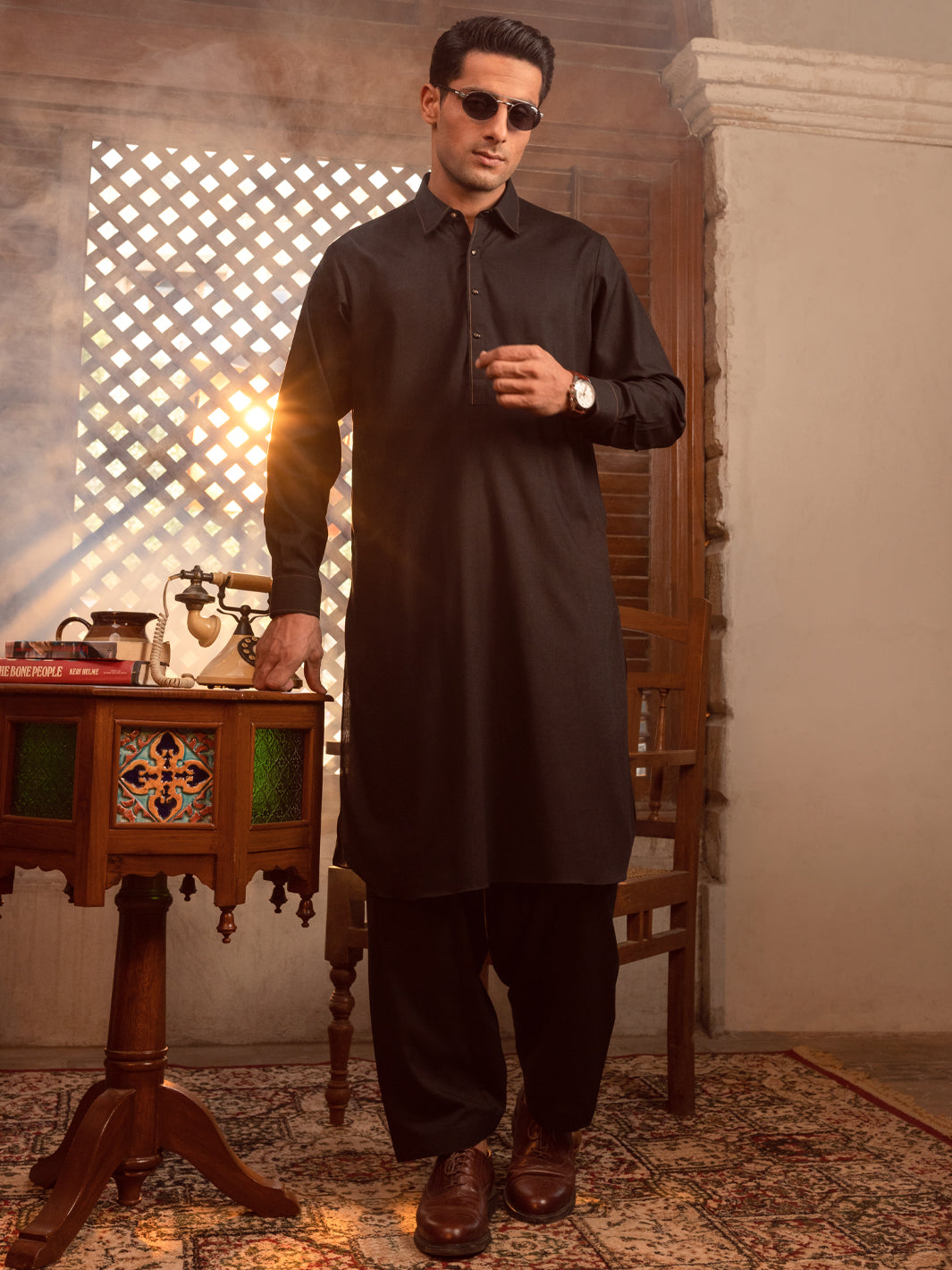 Black Blended Kameez Shalwar - ALWA-KS-404