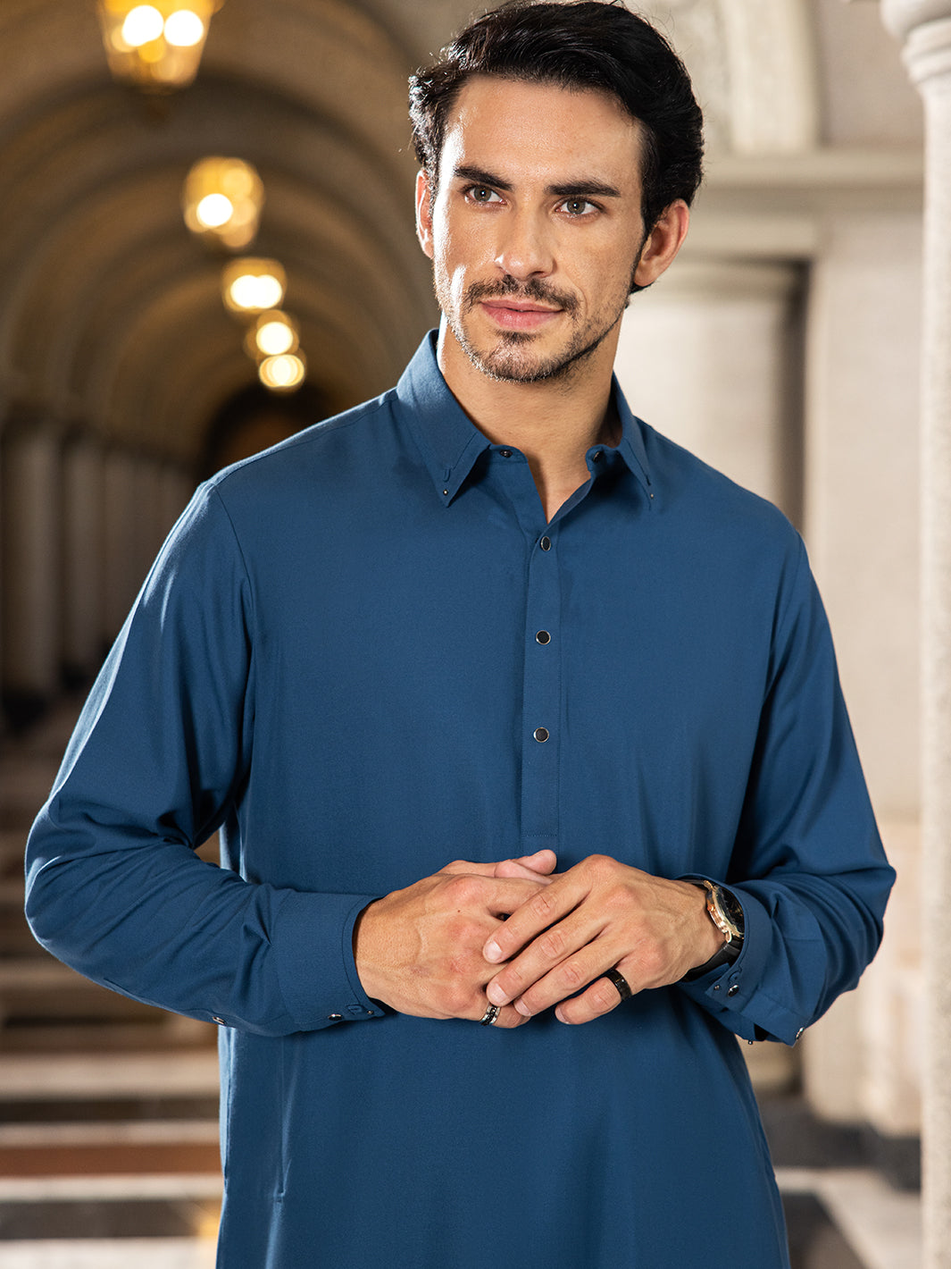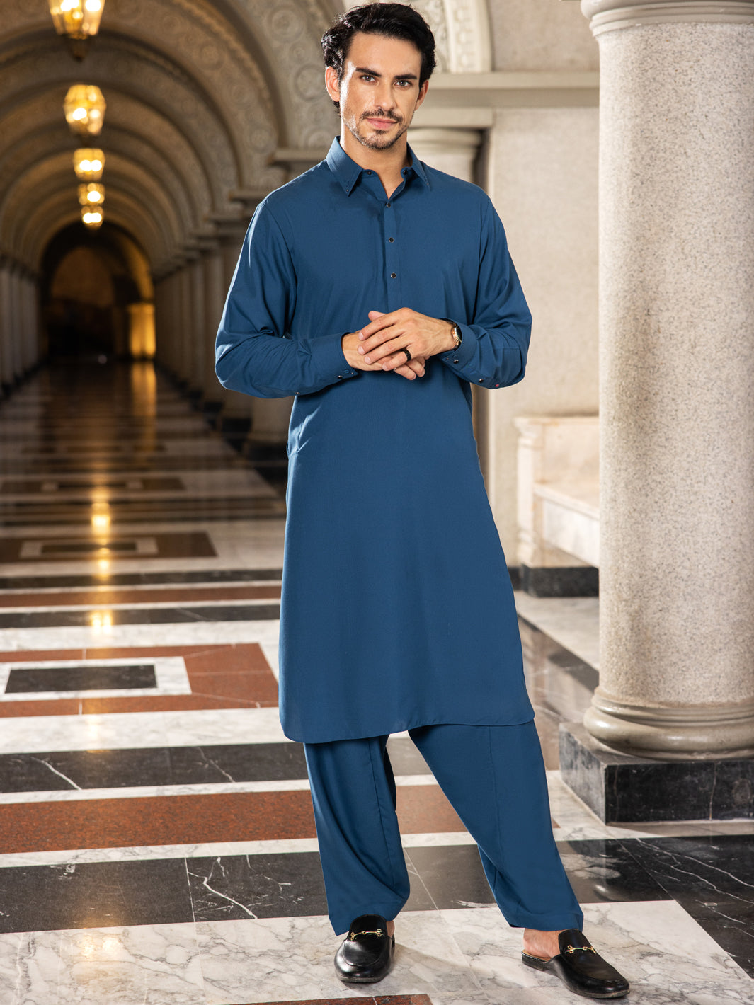 Teal Blue Blended Kameez Shalwar - ALWA-KS-417