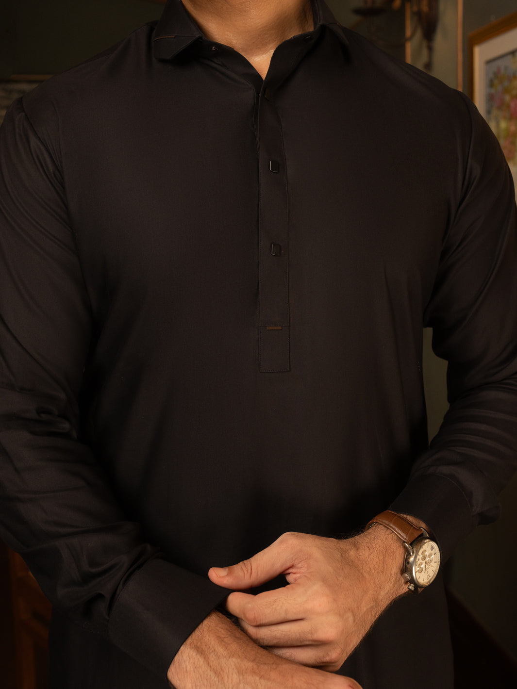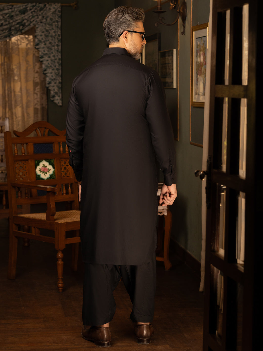 Black Cotton Kameez Shalwar - ALWA-KS-444
