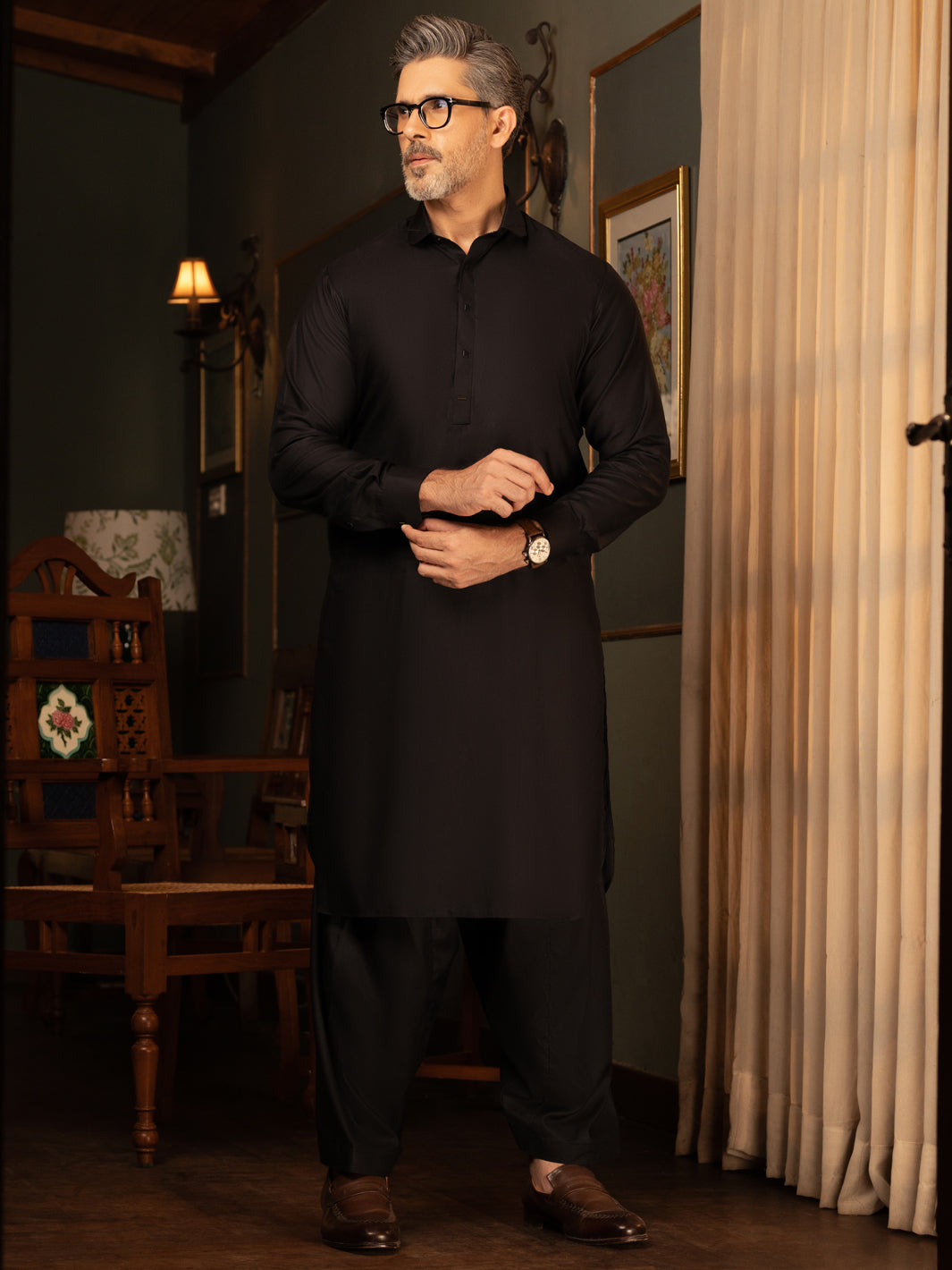 Classic Fit Kameez Shalwar With Cut & Sew Details on Collar and Placket, Featuring High Quality Buttons