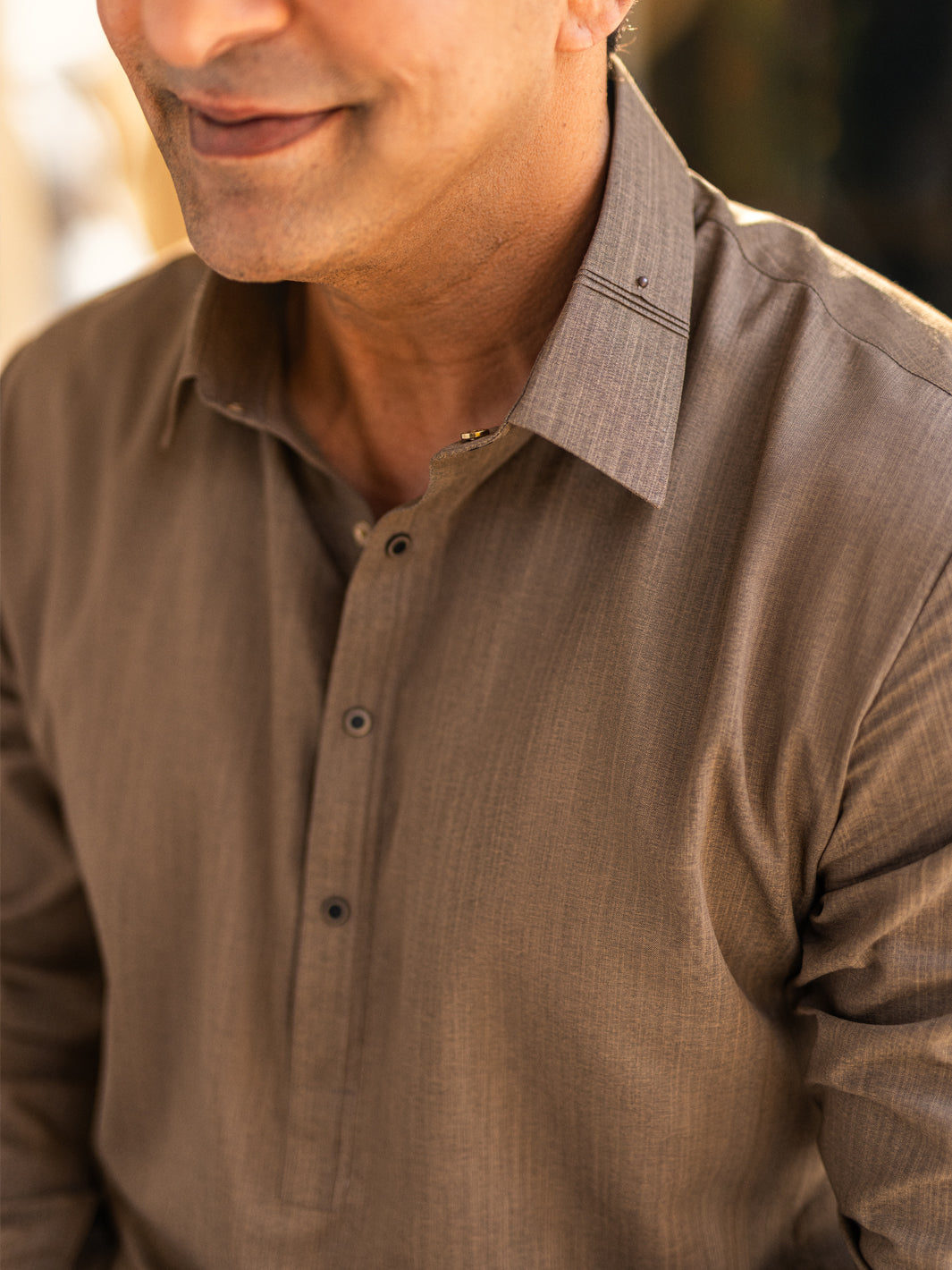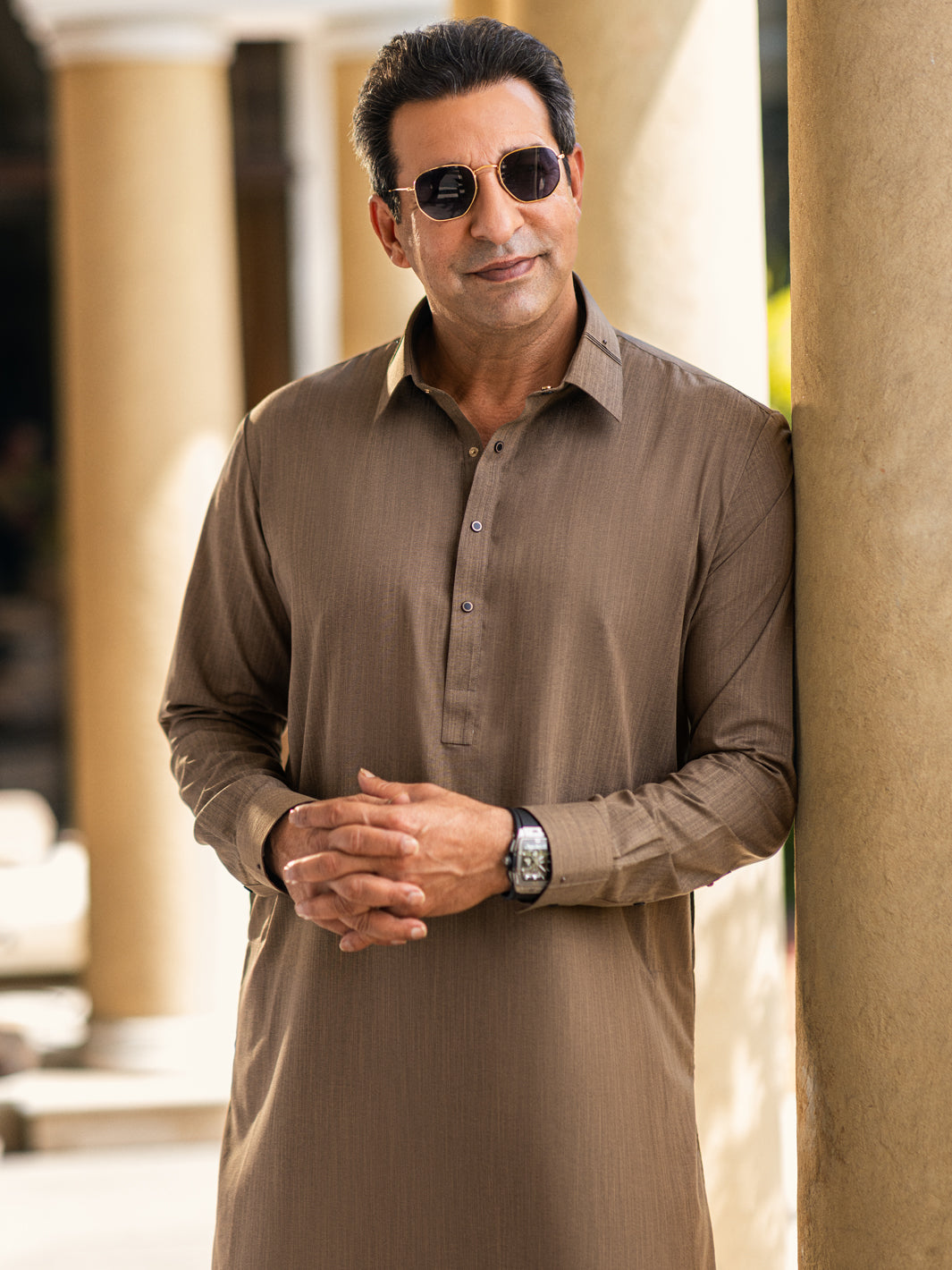 Brown Blended Kameez Shalwar - ALWA-KS-450