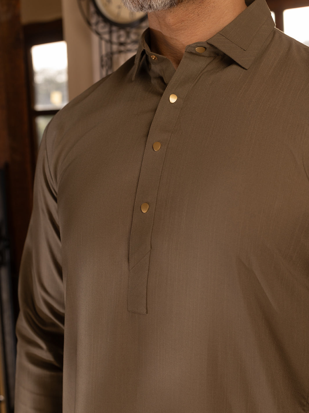 Classic Fit Kameez Shalwar With Cut & Sew Details, Featuring High Quality Buttons