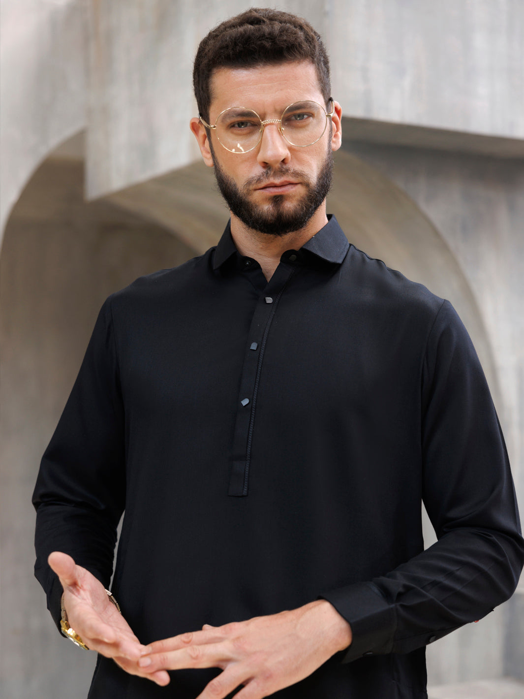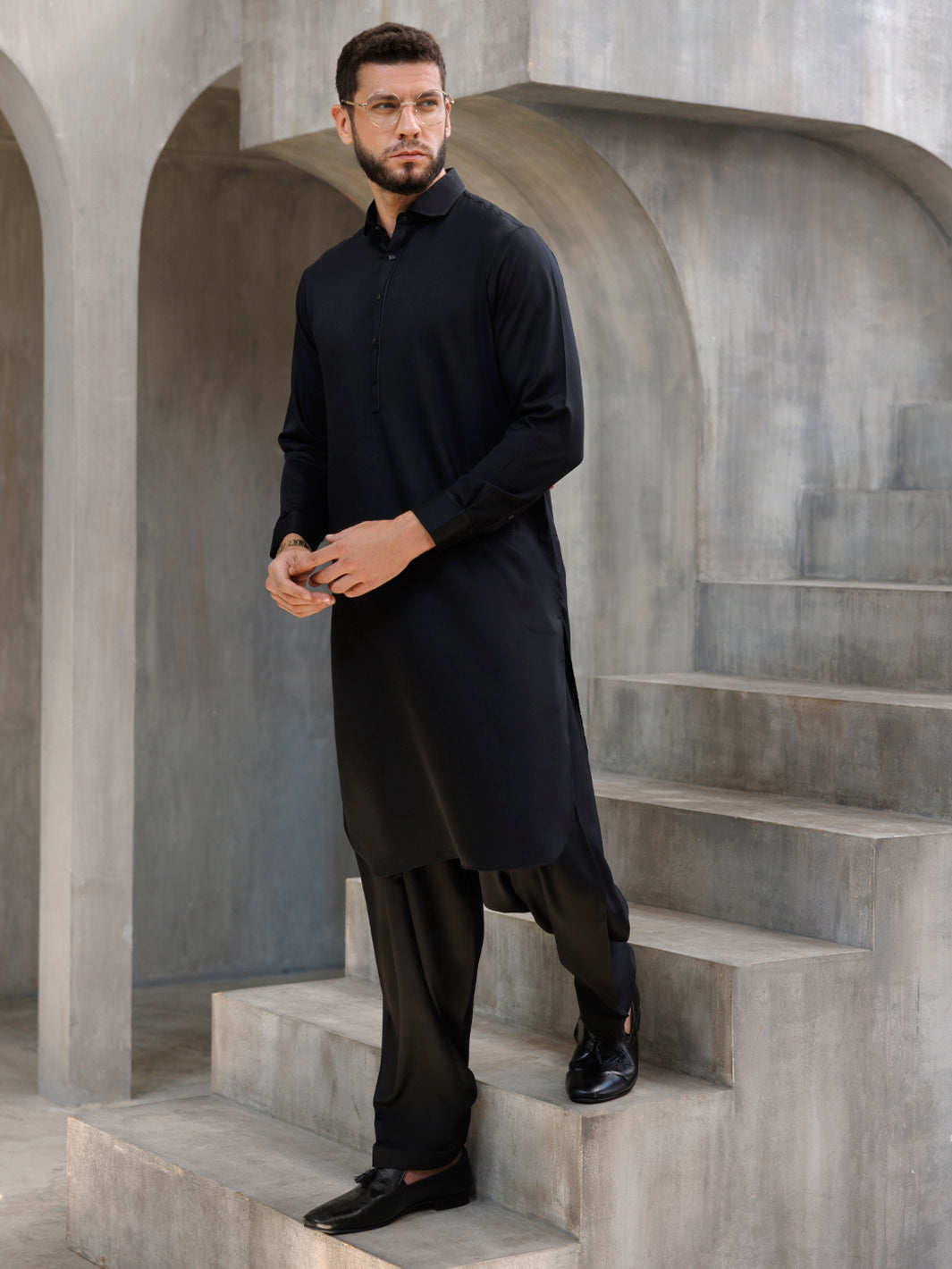 Black Blended Kameez Shalwar - ALWA-KS-477