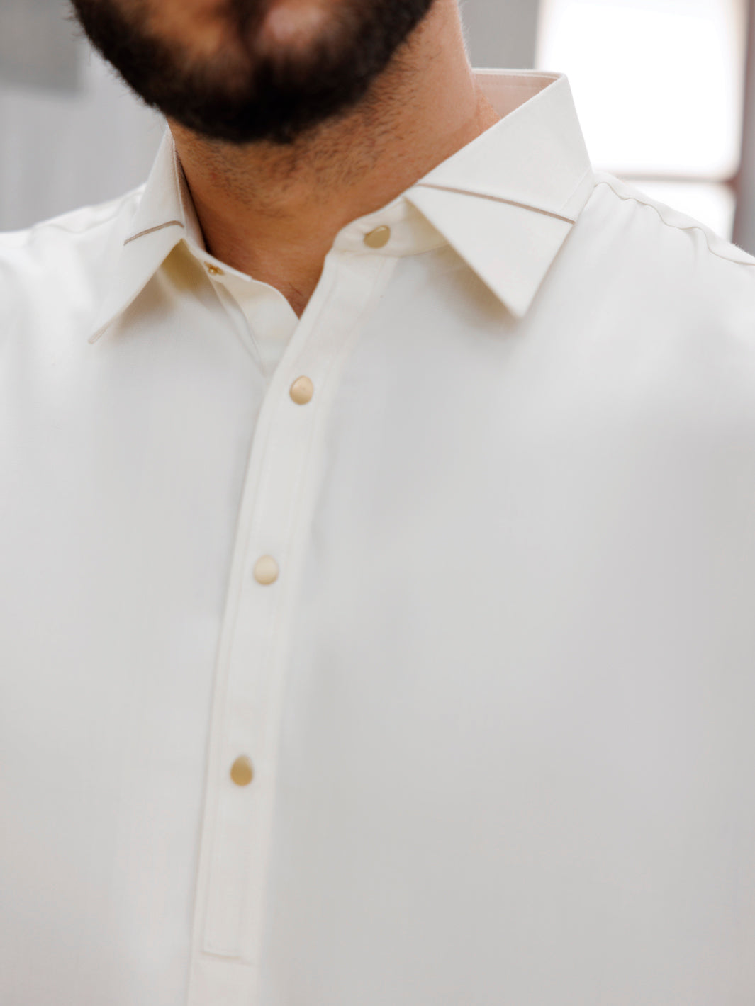 Classic Fit Kameez Shalwar Featuring Unique Patch Details On The Placket With High-Quality Buttons