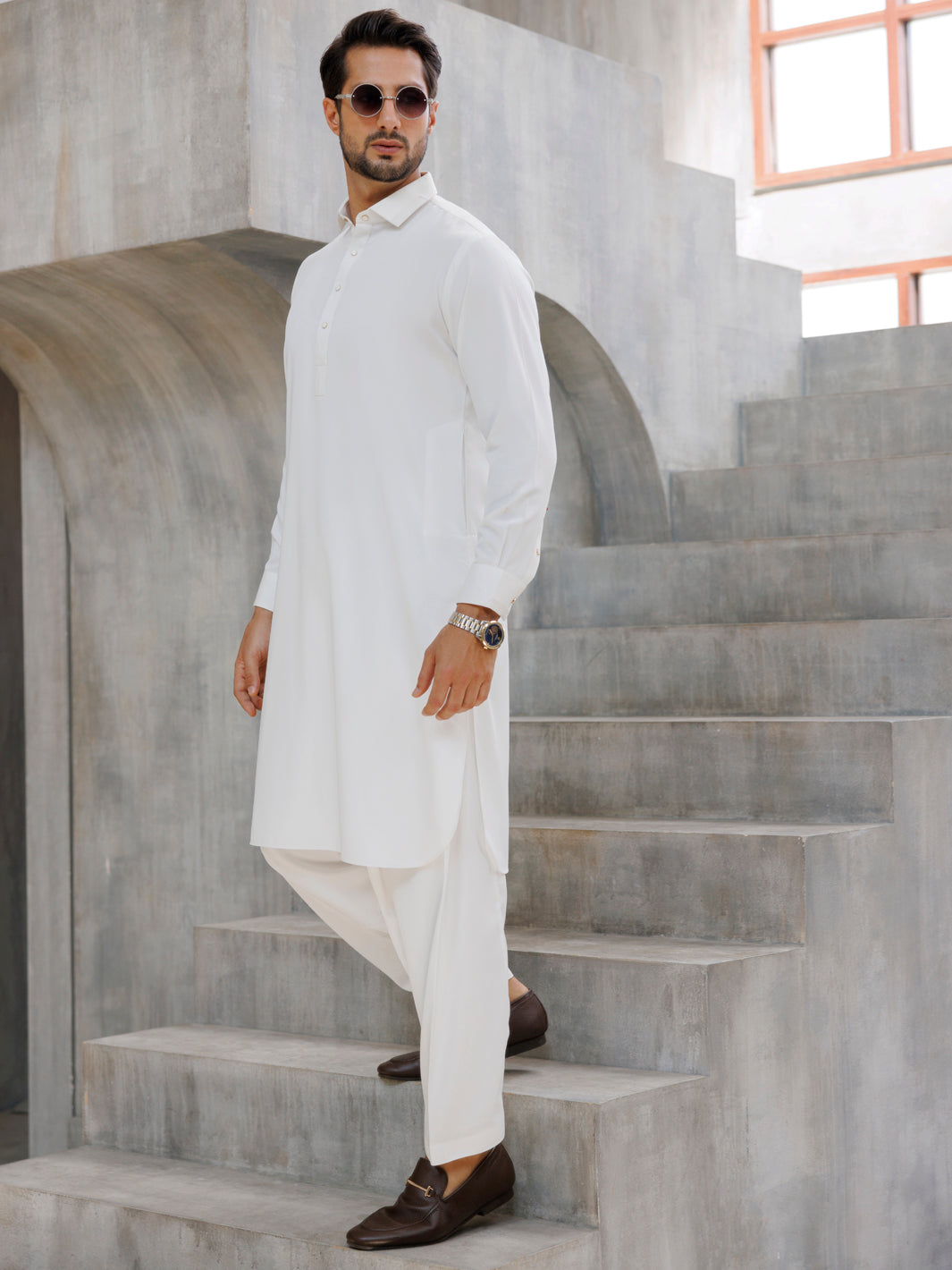Classic Fit Kameez Shalwar Featuring Minimal Cut And Sew Details On The Placket And Cuff