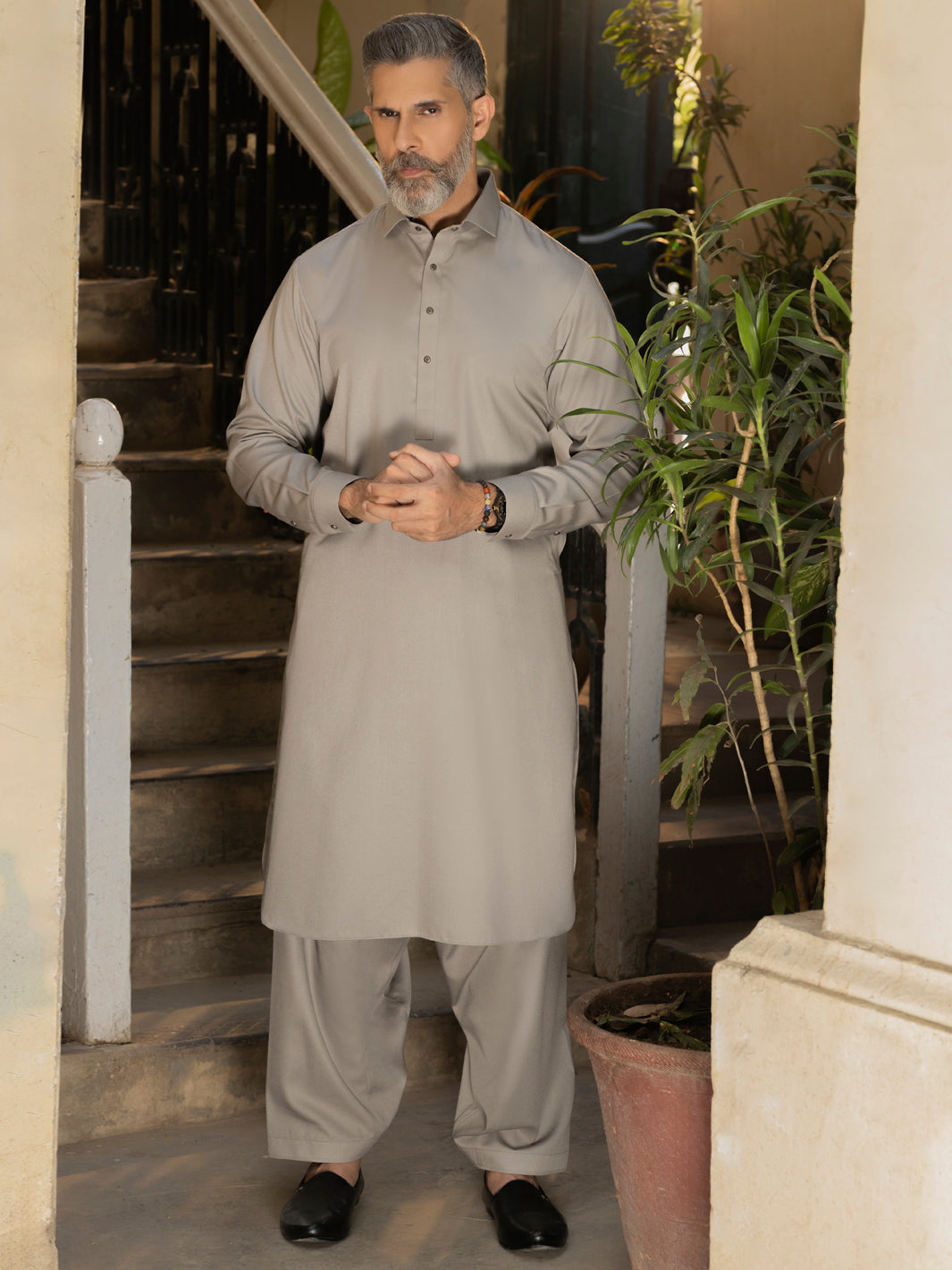 Light Grey Blended Kameez Shalwar - ALWA-KS-508