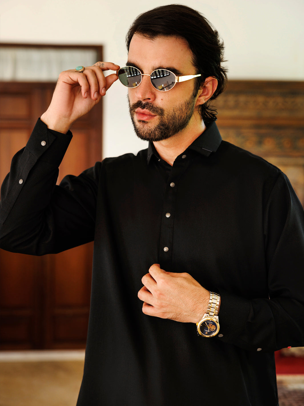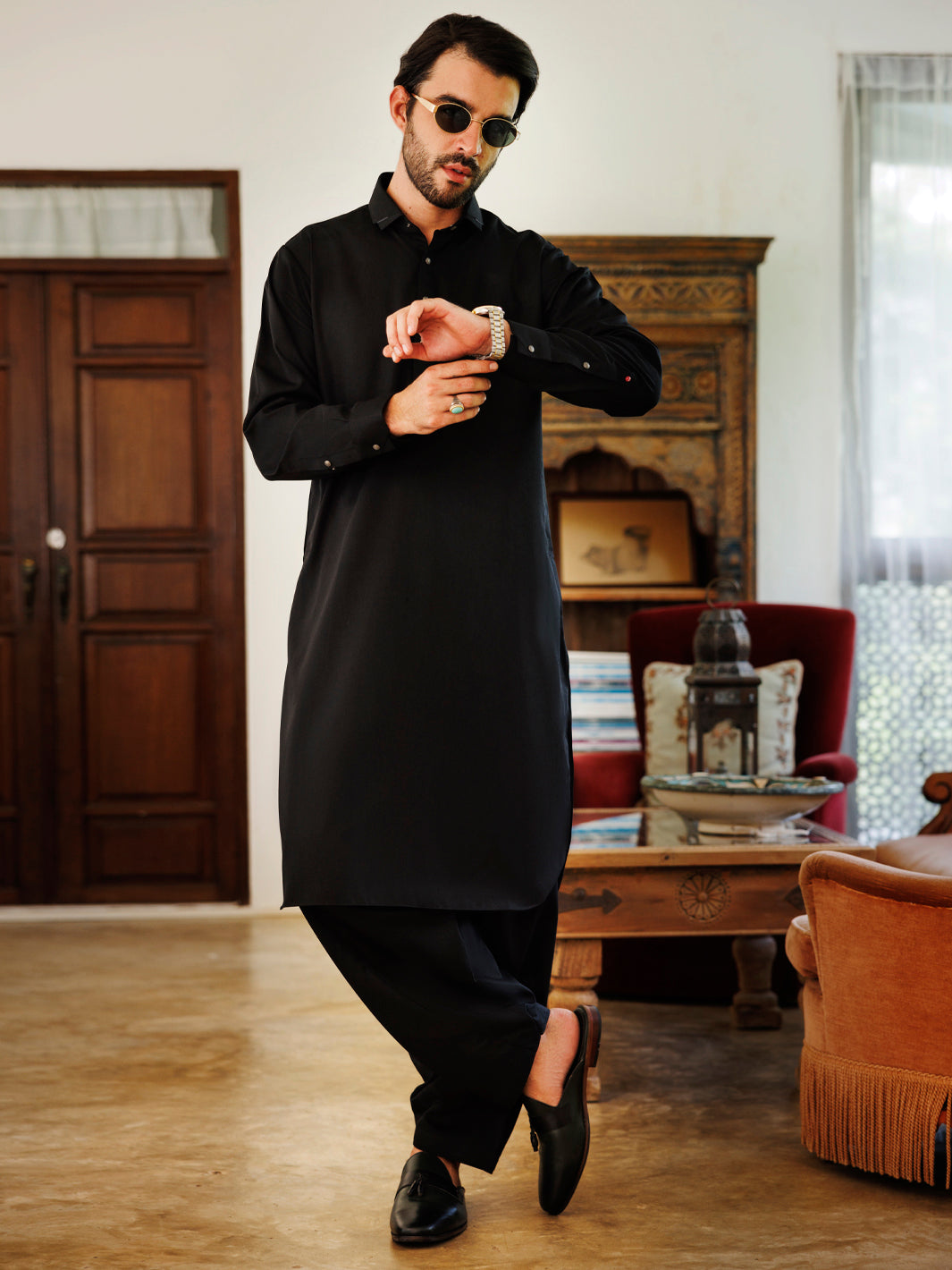 Black Blended Kameez Shalwar - ALWA-KS-509