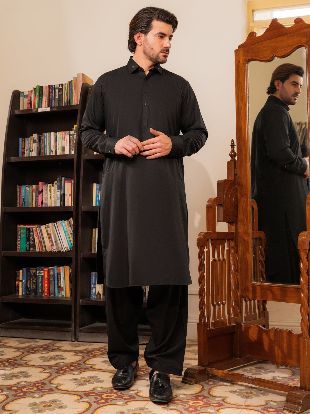 Black Blended Kameez Shalwar - ALWA-KS-549