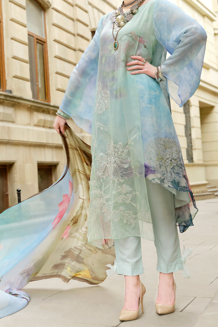 Aqua Chiffon 3Pc Stitched - ALP-685
