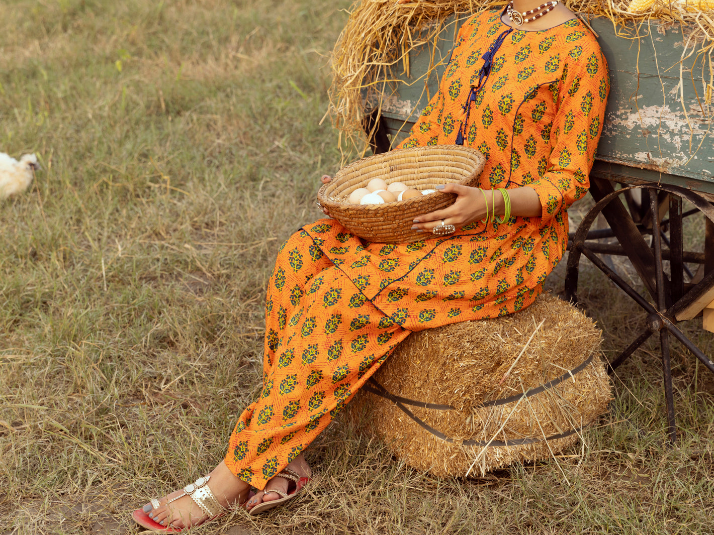 Orange Cambric 2Pc Stitched - AWP-2PS-LKS-528