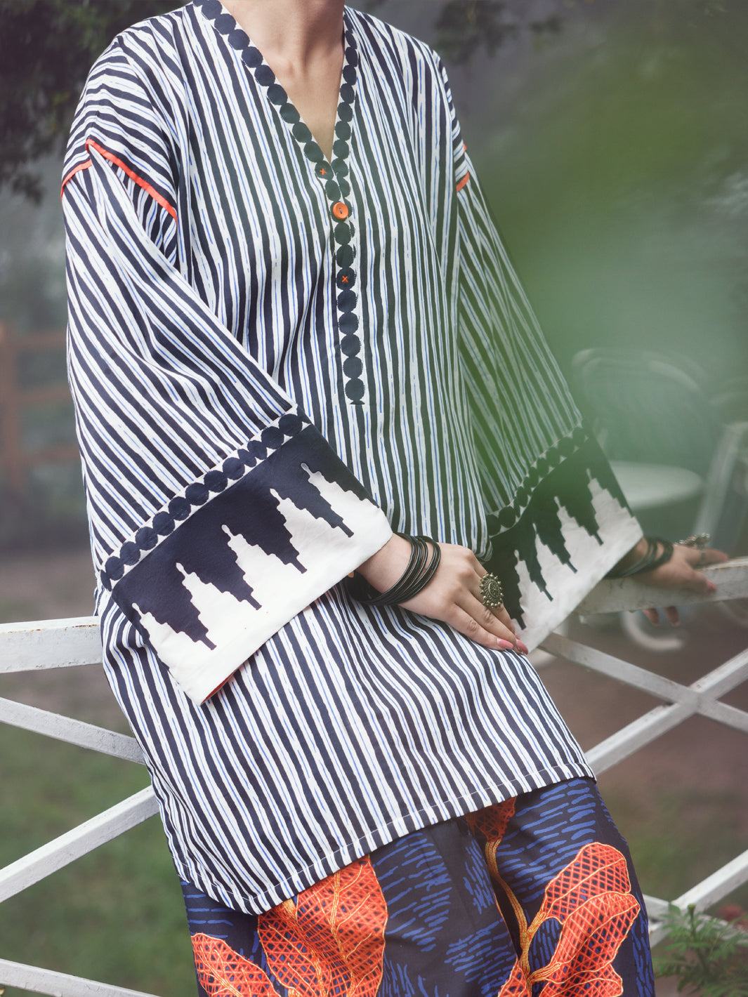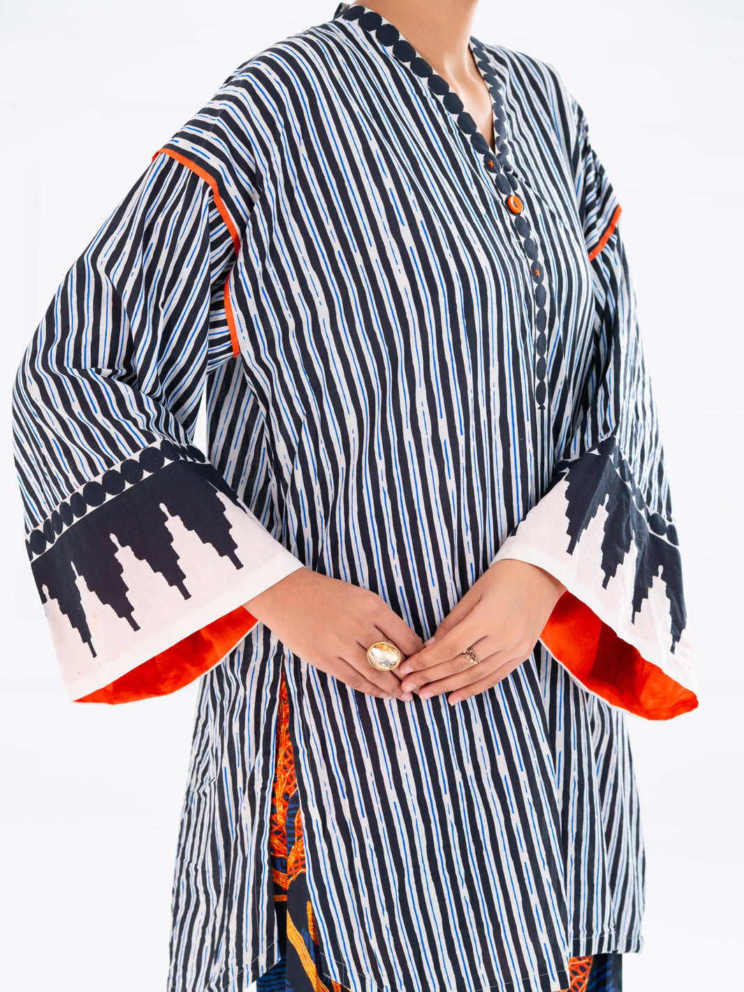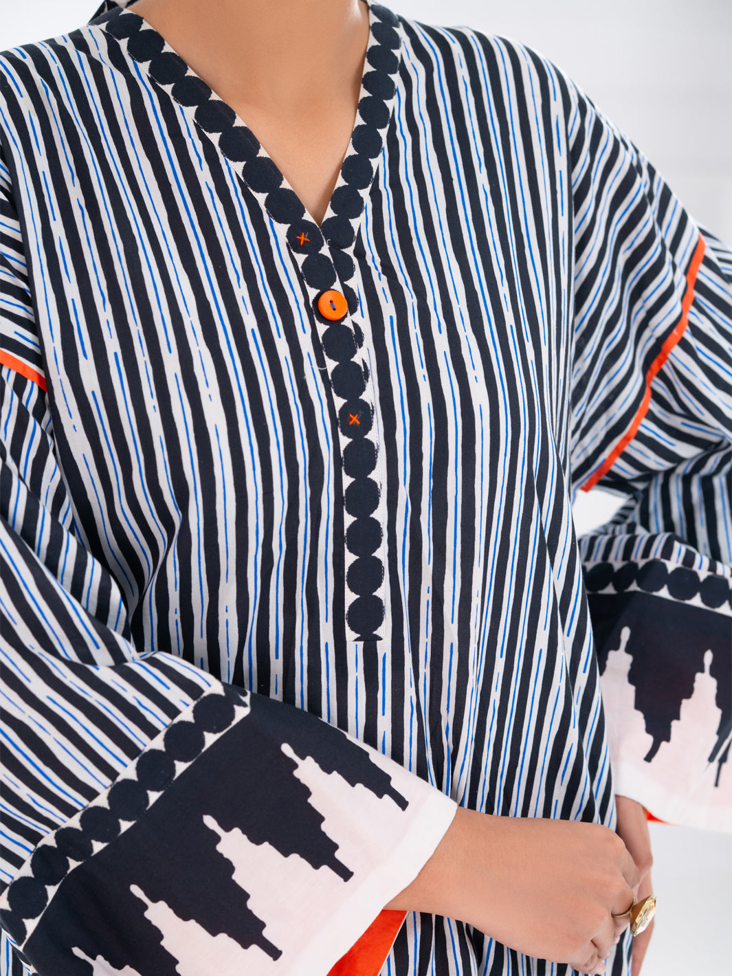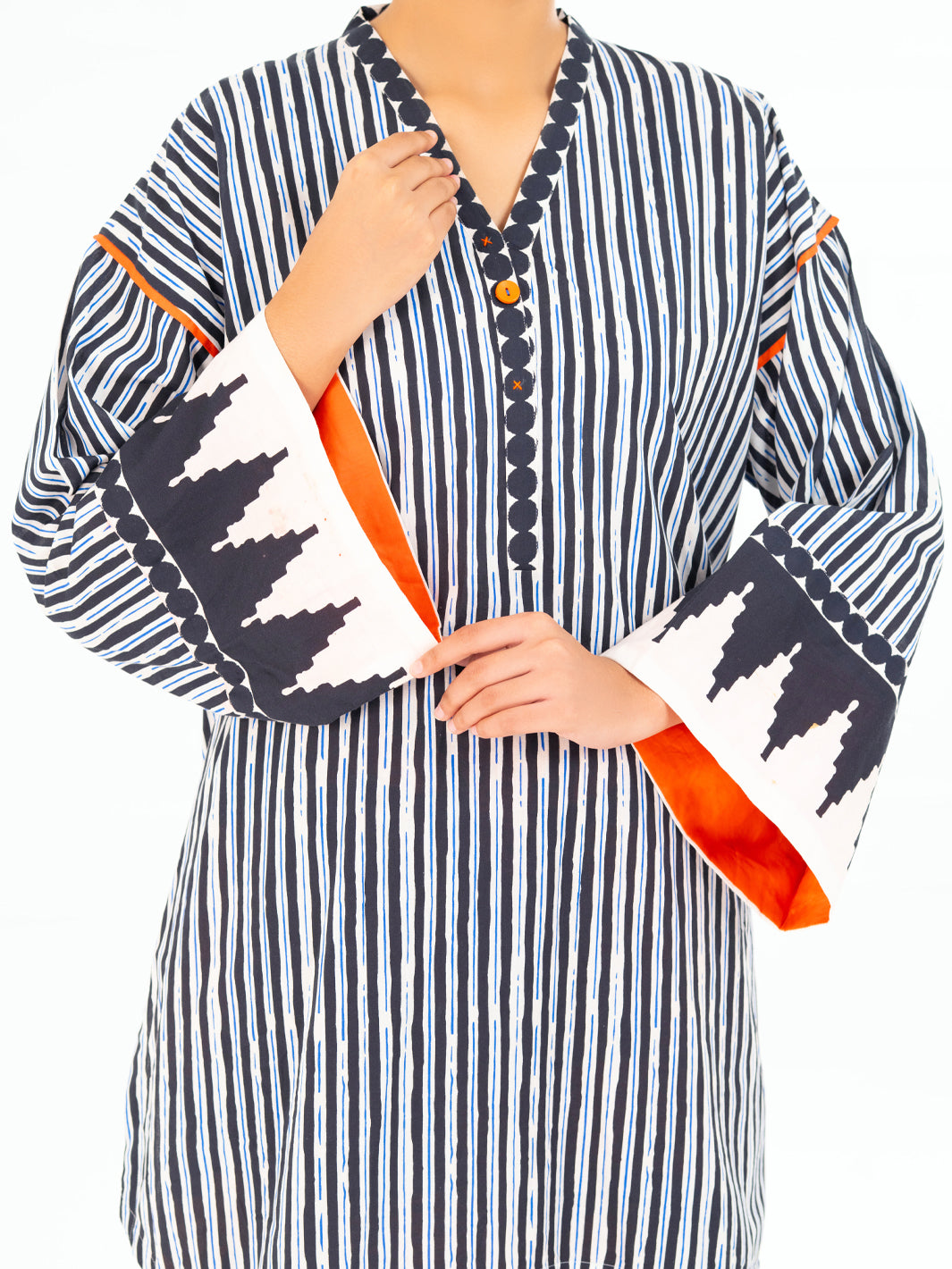 Short Length Drop Style Printed Cambric Shirt
