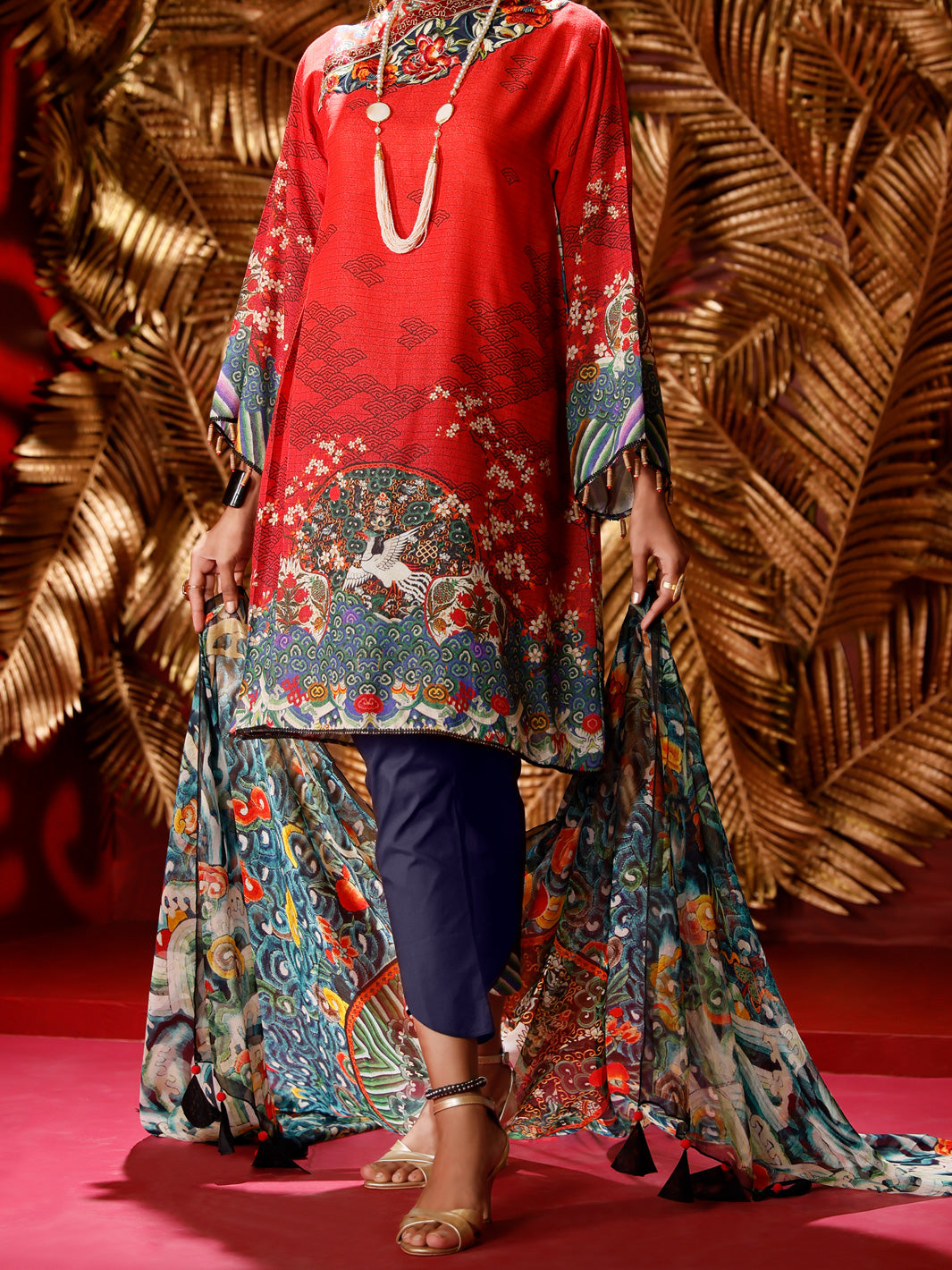 Red Karandi 3Pc Unstitched - AWP-3PS-277