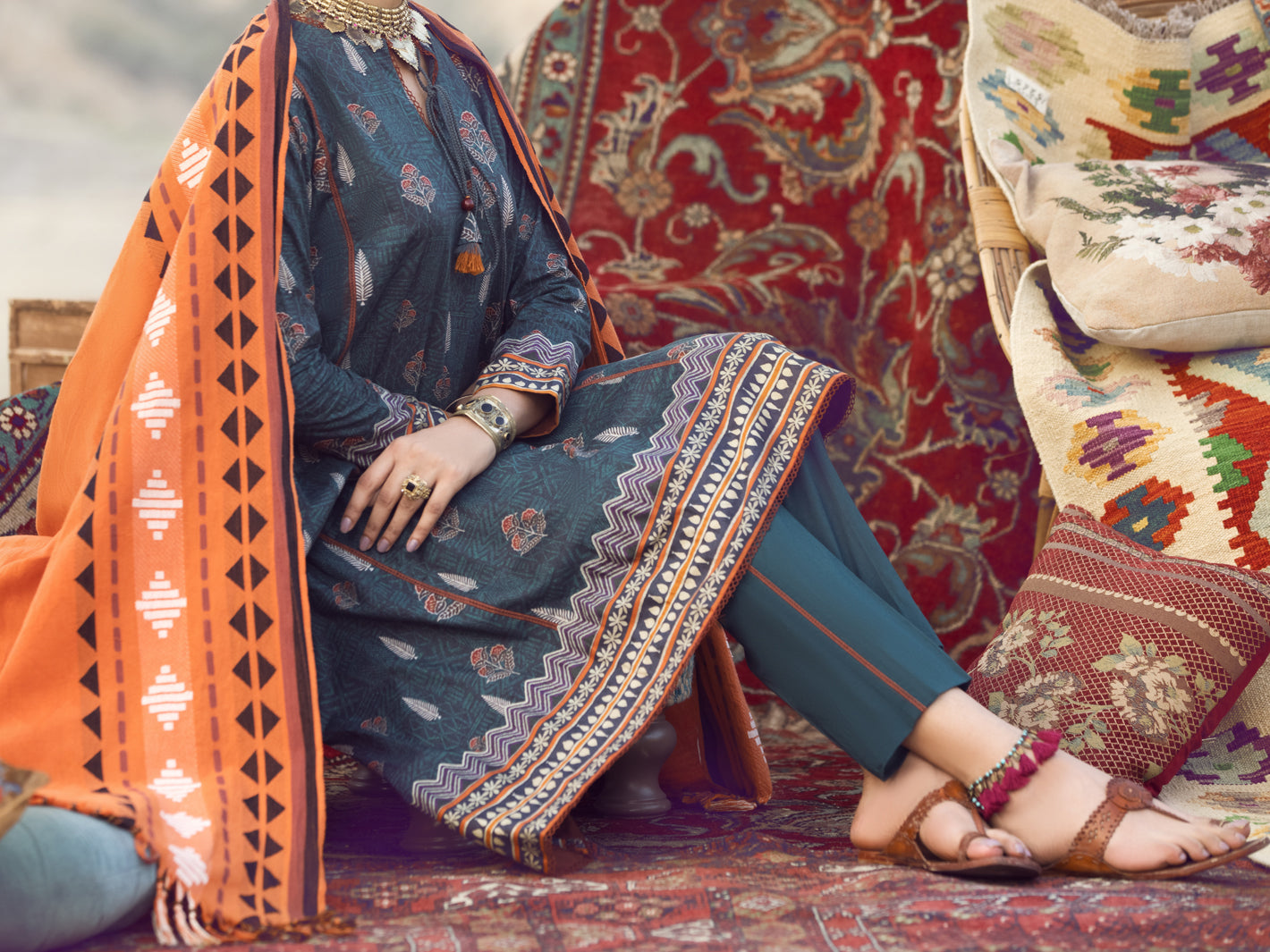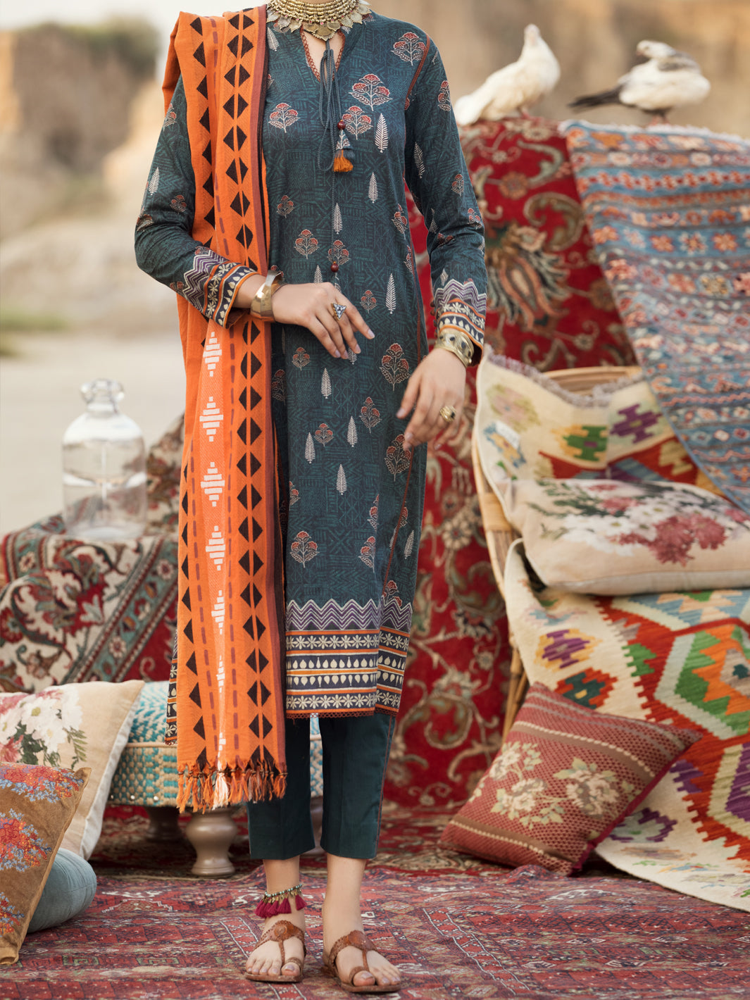 Teal Cambric 3Pc Stitched - AWP-3PS-332