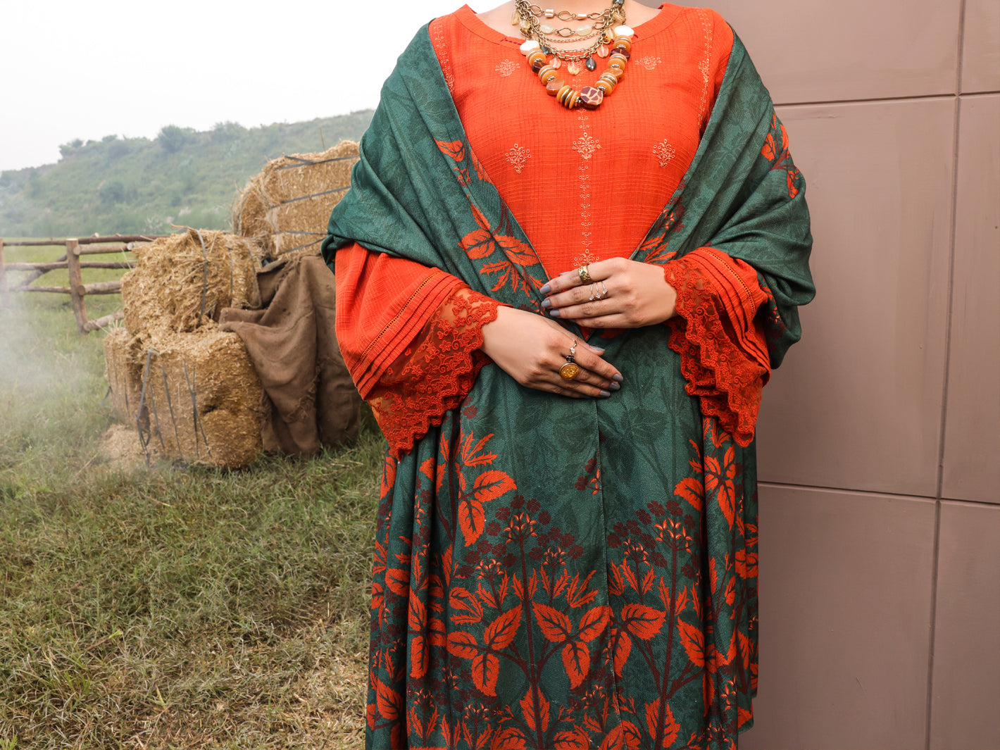 Orange Dobby Unstitched 3Pc - AWP-3PS-412