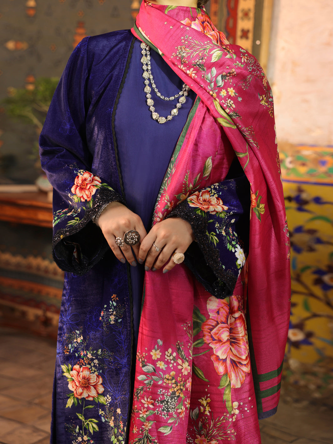 Dark Blue Velvet Unstitched 3Pc - AWP-3PS-445