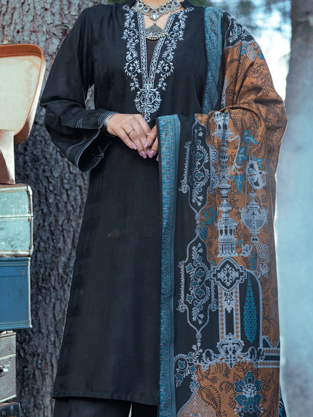 3-Piece Suit With Dobby Embroidered Shirt Put Together With Culottes Pant And Jacquard Shawl.