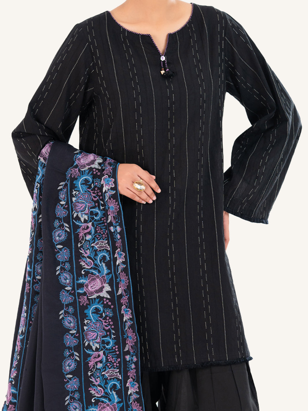 Black Dobby 3Pc Unstitched - AWP-3PS-695
