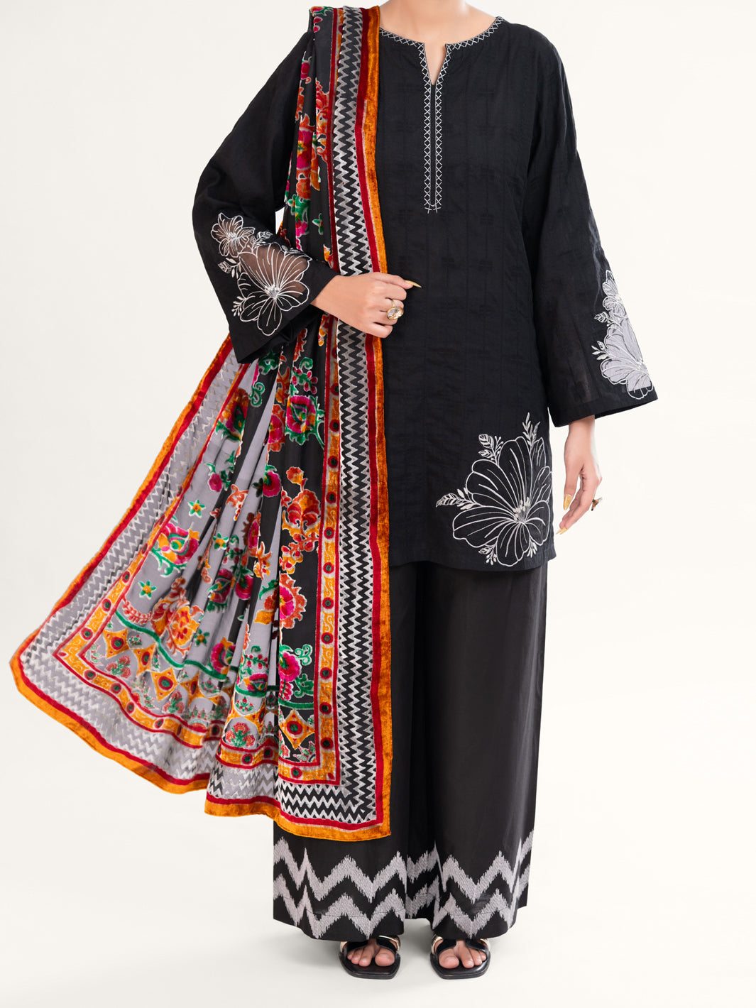 Black Yarn Dyed 3Pc Unstitched - AWP-3PS-748