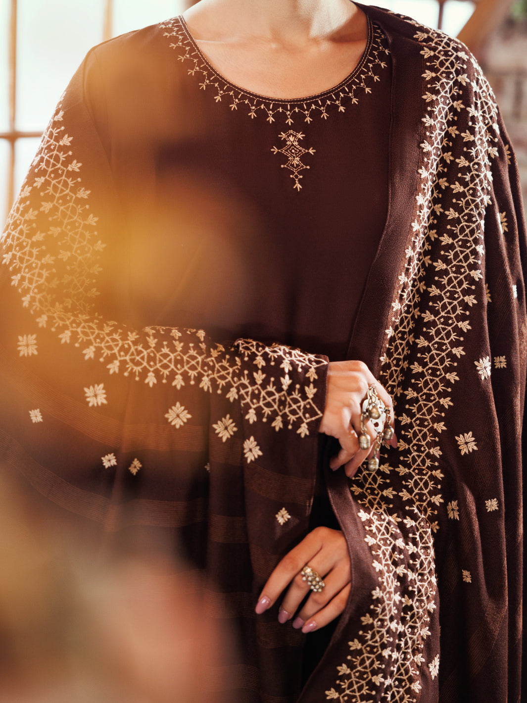 Dark Brown Viscose Karandi Dyed 3Pc Stitched - AWP-3PS-761