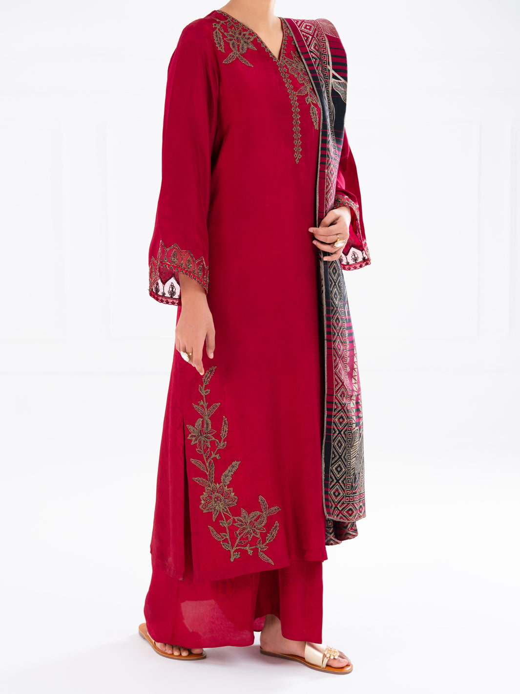 Red Taffeta Silk 3Pc Unstitched - AWP-3PS-778