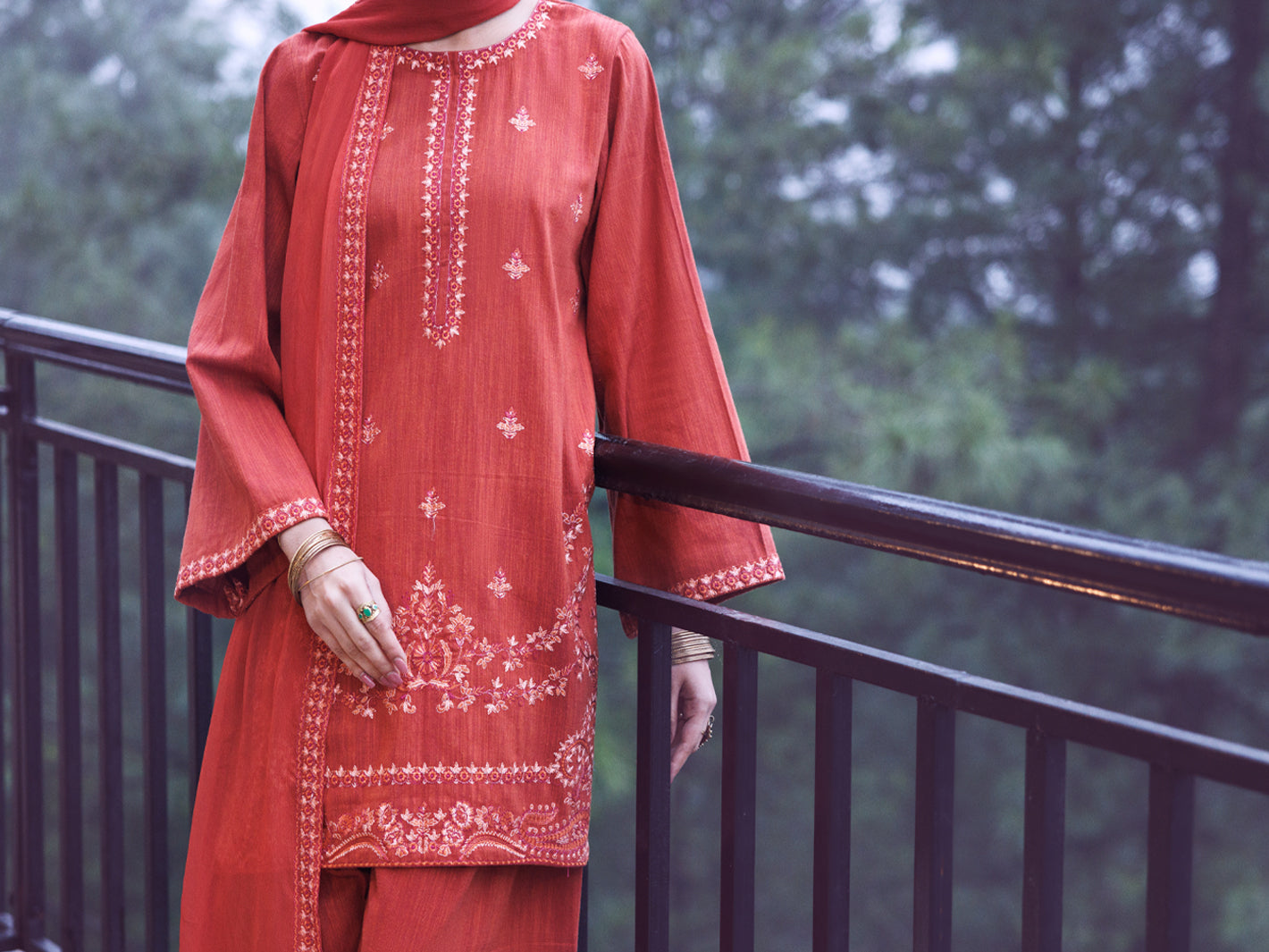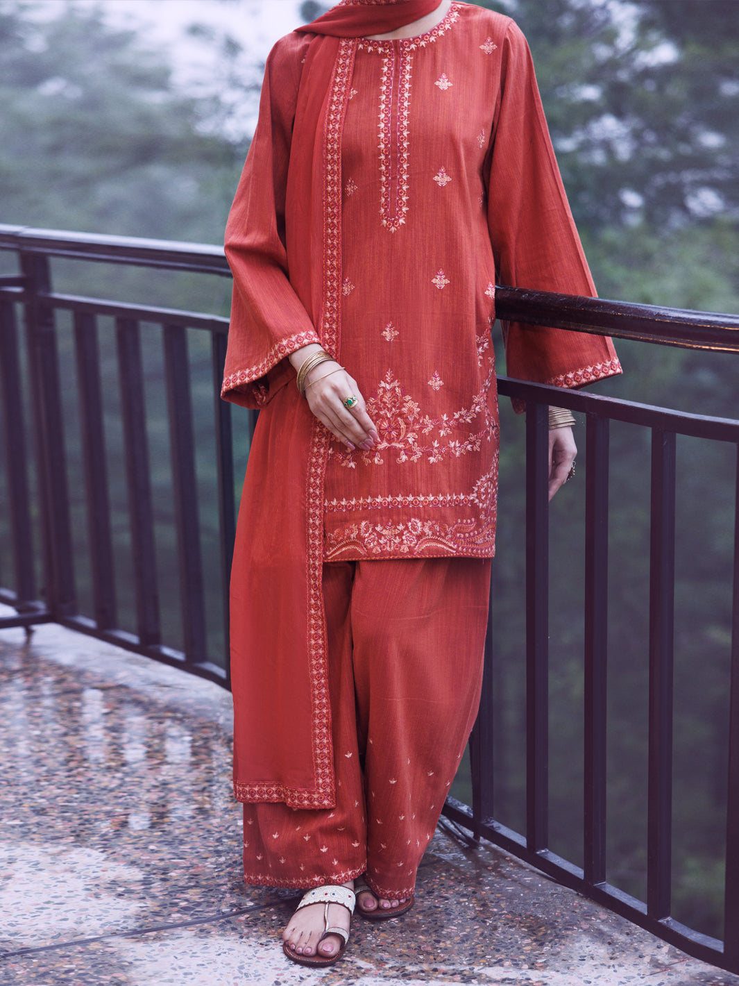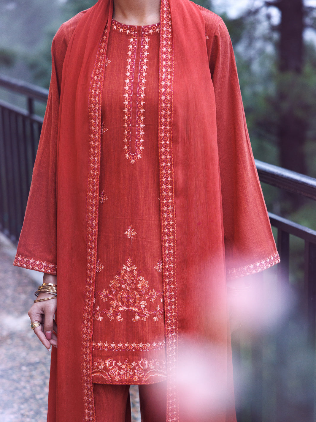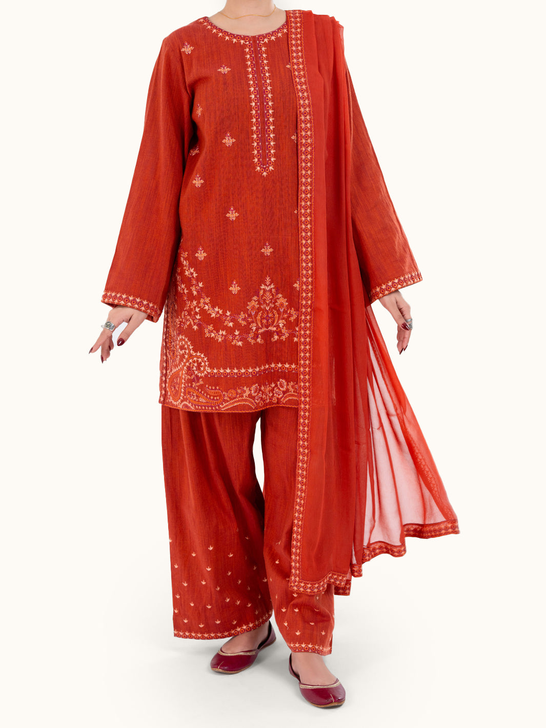Rust Yarn Dyed 3Pc Stitched - AWP-3PS-787