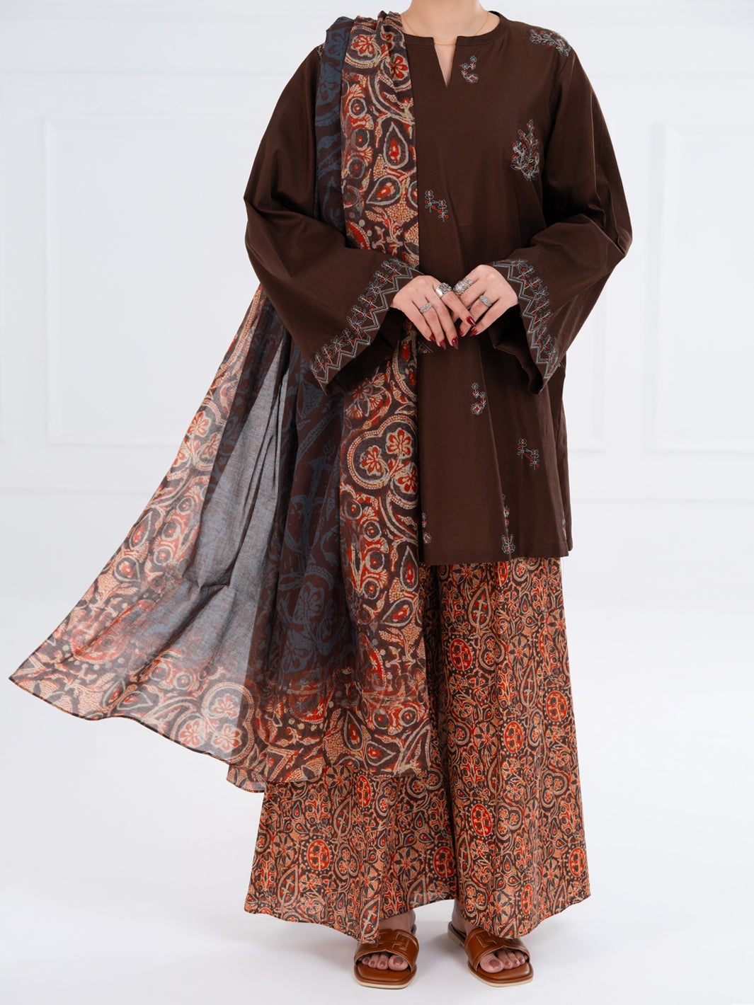 Brown Cambric 3Pc Stitched - AWP-3PS-870