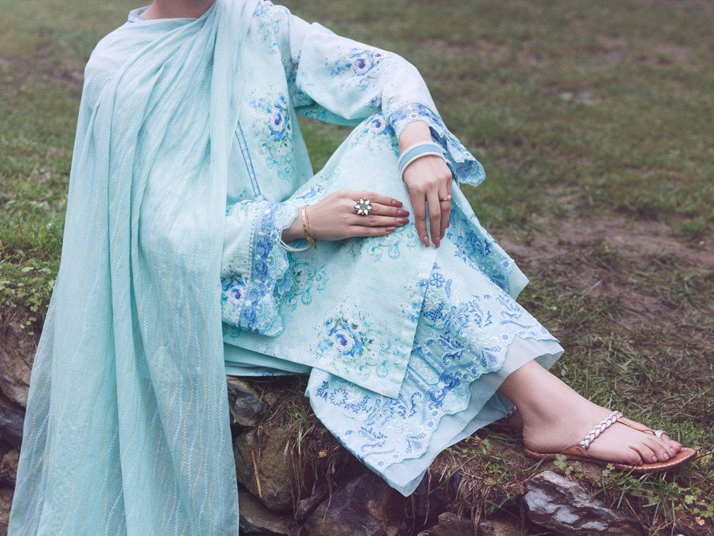 Ice Blue Dobby 3Pc Stitched - AWP-3PS-879
