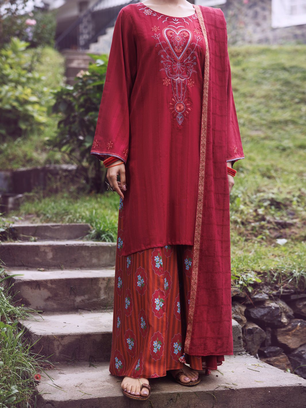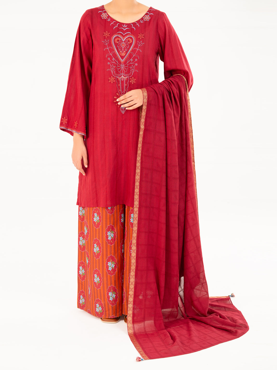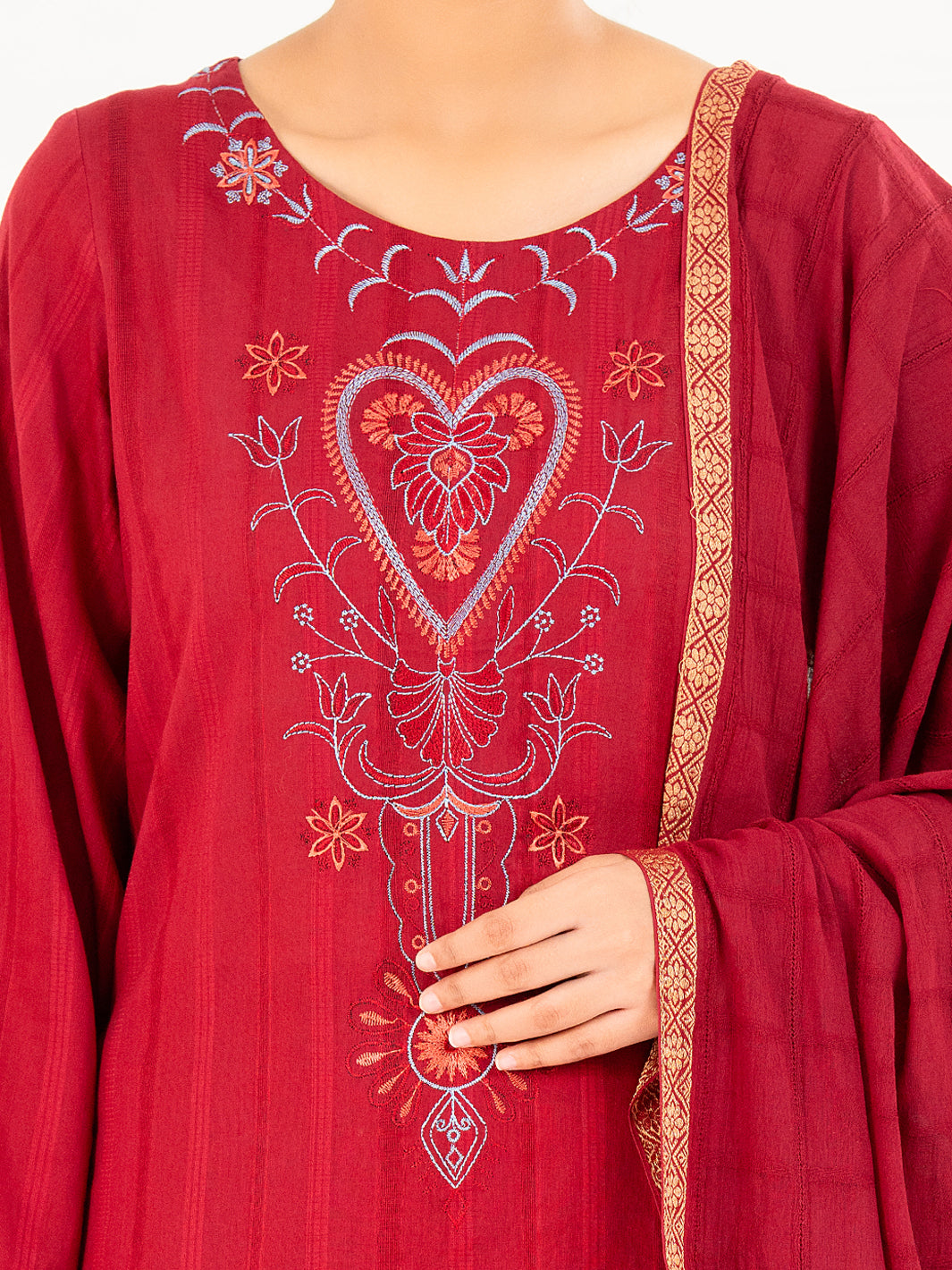 Maroon Dobby 3Pc Stitched - AWP-3PS-884