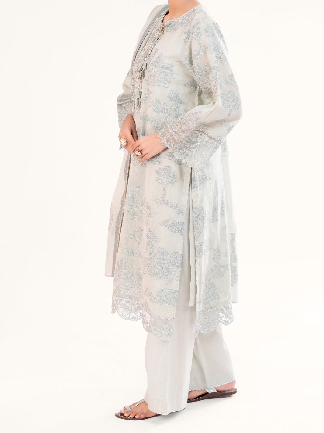 Yarn Dyed Long Length Shirt With Embroidered Daman Sleeves And Neckline