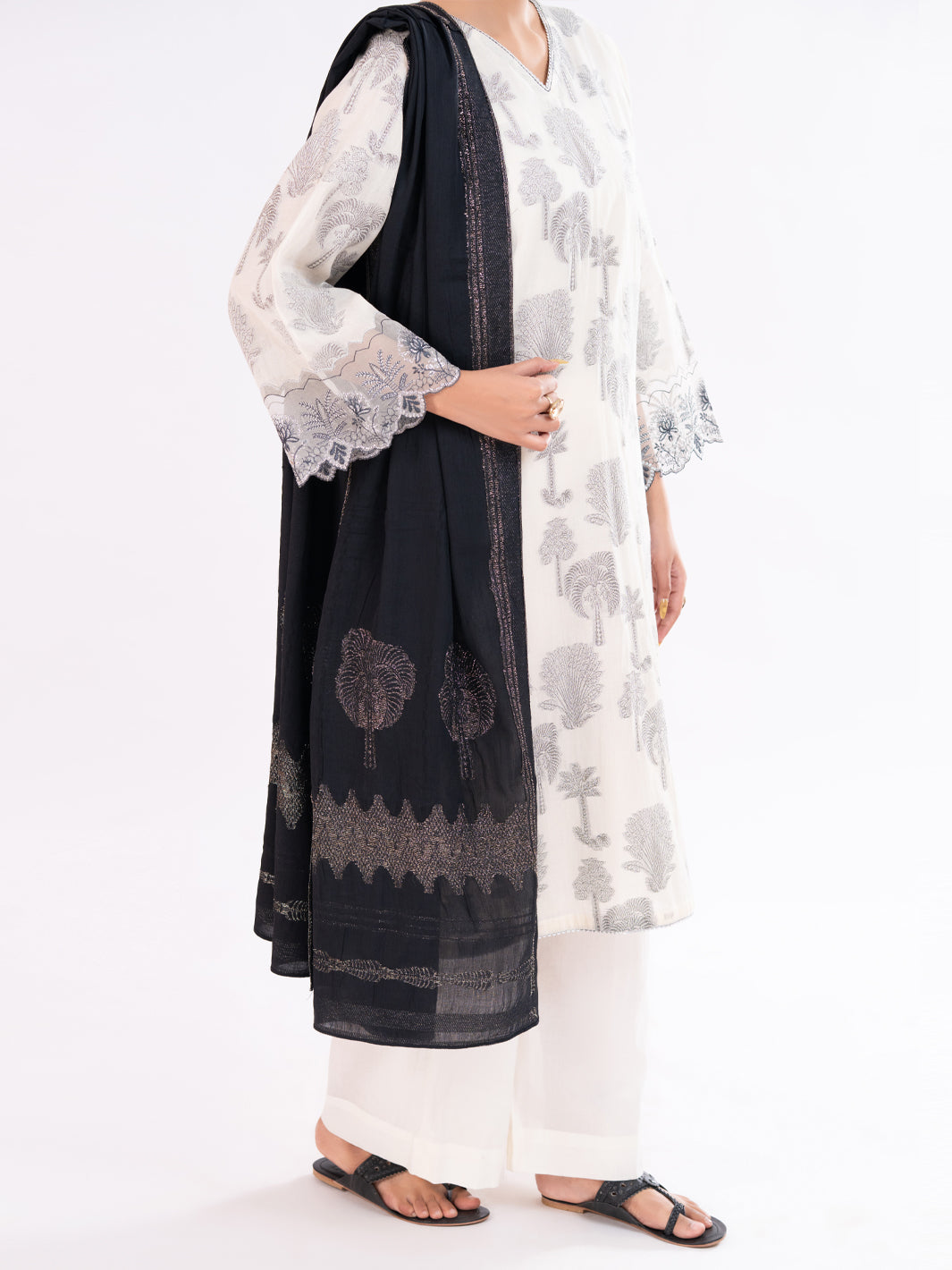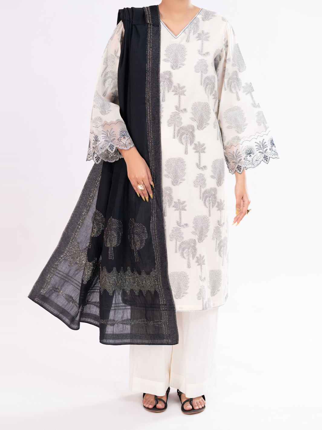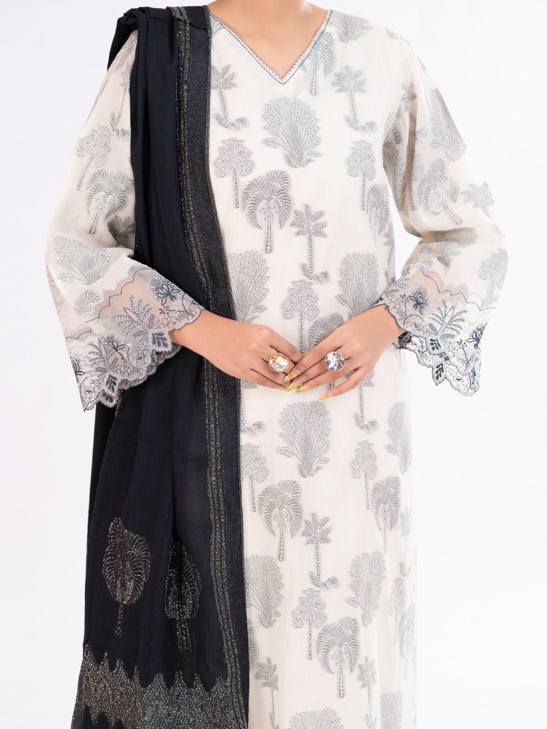 Sleeves Embroidered Border: 1.10 Meters