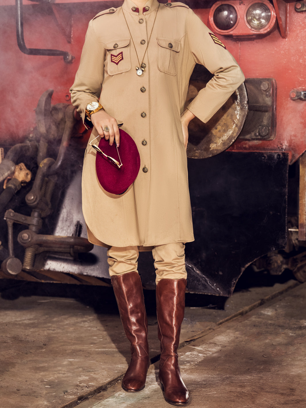 Trench Coat With Band Collar, Detailed With Patch Pockets & Badges