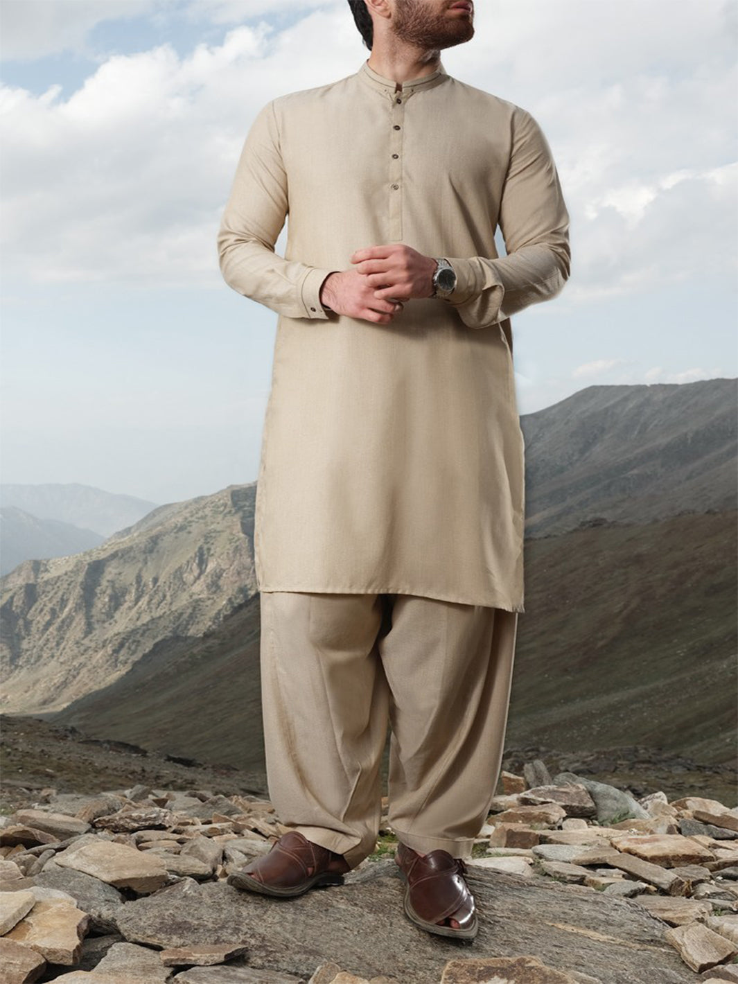 Sand Colored Blended Kameez Shalwar - AL-KS-2408