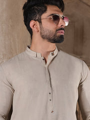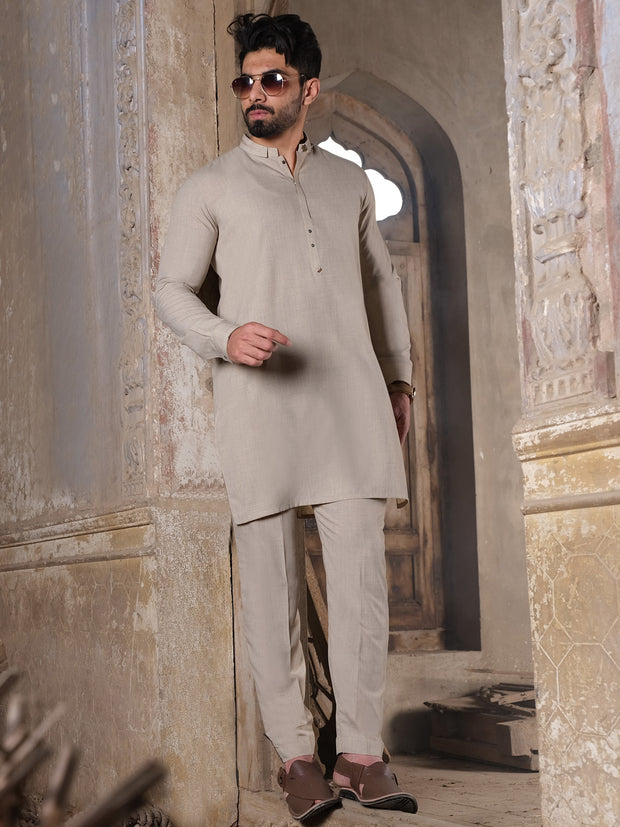 Cut And Sew Kurta Pajama Stitched In Blended Fabric With Details On Collar, Placket And Cuffs