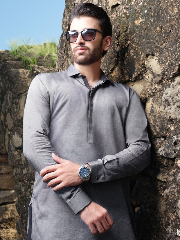 Grey Blended Kurta Pajama - AL-KS-2564