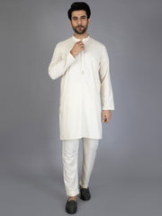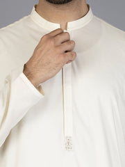 Off White Semi Formal Kameez Trouser With Embroidery On Placket
