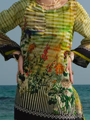 This Vibrant And Fresh Tropical Inspired Print With Loose Cut, Boat Neckline And Leather Detail On Shoulder.