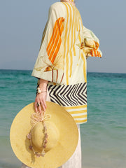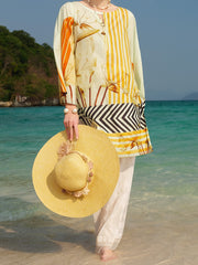Classy Subtle Print Of Bold Floral And Stripes With V- Cutout Boat-Neck Adorn With Tassel Detail. Stylize Through Loose Sleeves And Straight Cutline.