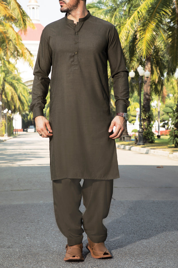 Chocolate Brown Blended Kameez Shalwar - AL-KS-2347