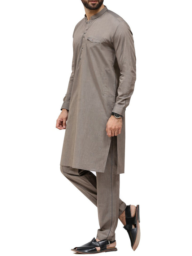 Cut and Sew Kurta Pajama Stitched In Cotton Fabric With Details On Collar, Placket and Cuffs.