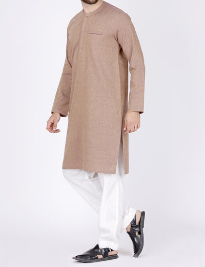 Purple Shade Transfer Kurta Stitched In Blended Fabric With Cuts & Sew Detail On Front Pocket